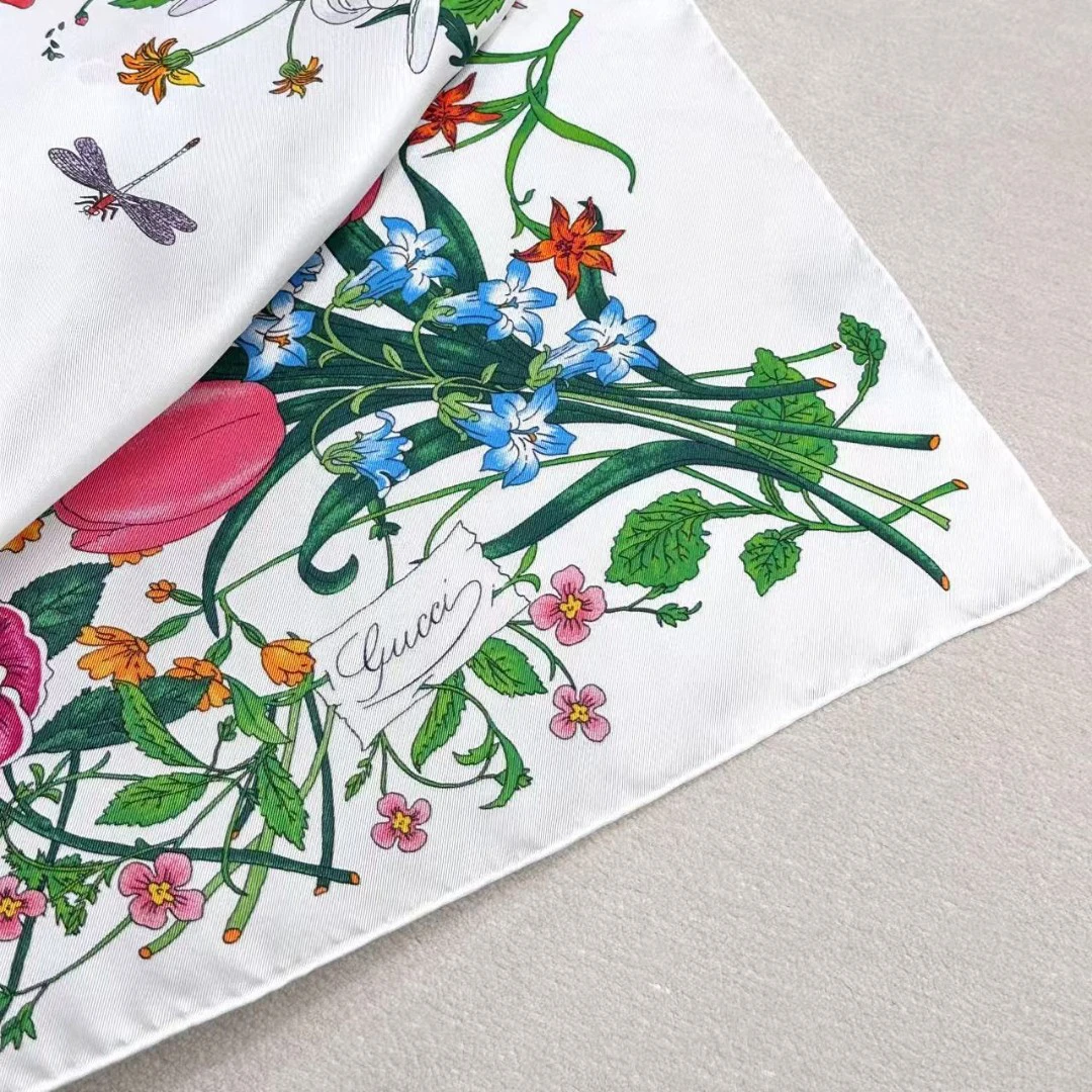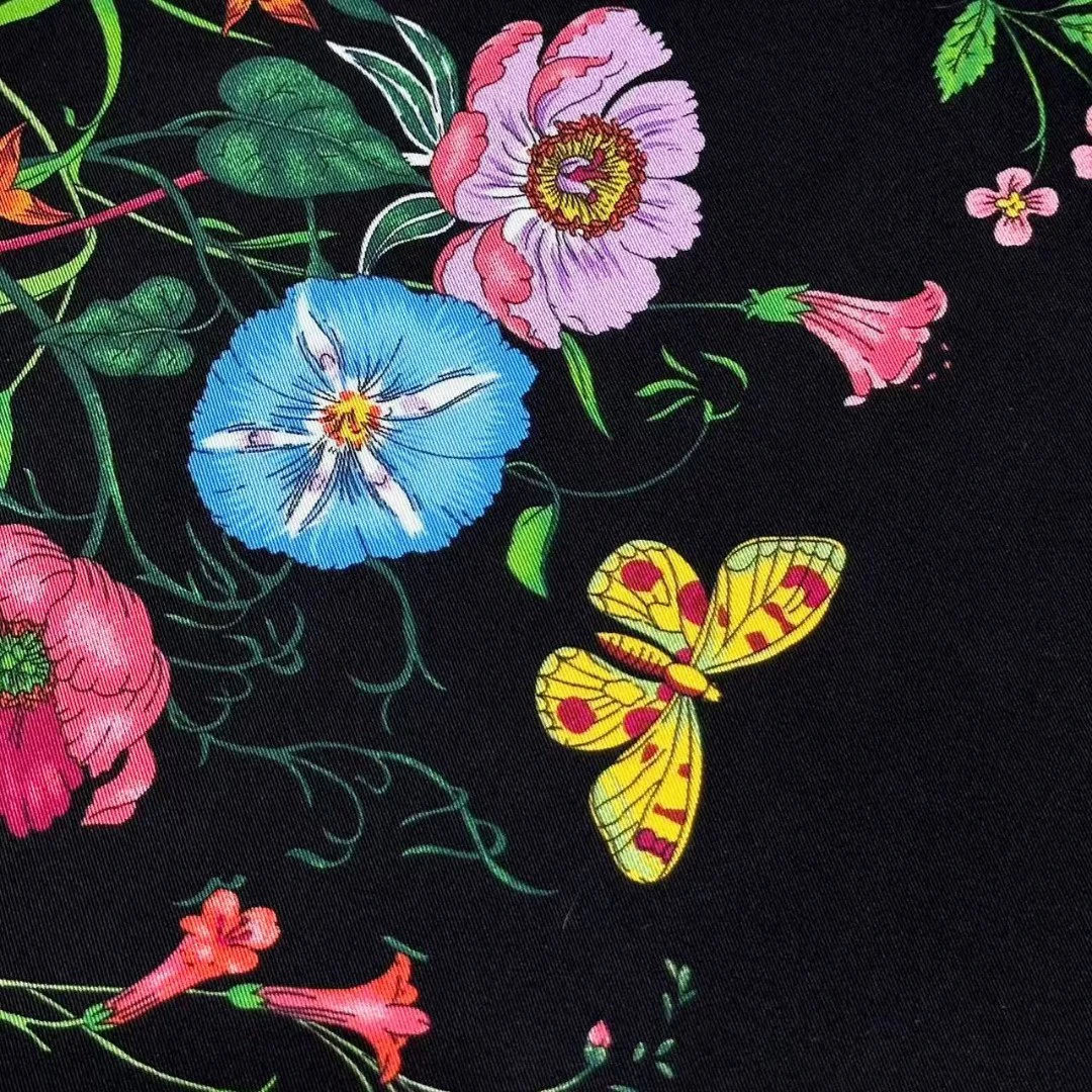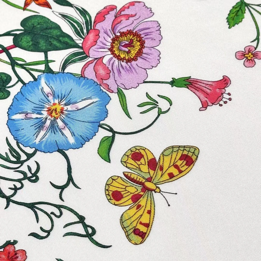 The classic floral print injects the same romantic atmosphere into the new series as always. The floral pattern was originally designed by artist Vittorio Accornero in the 1960s; now, it is reinterpreted as colorful flowers, like a waterfall, on this green mulberry silk square scarf, showing the beauty of contrasting colors.