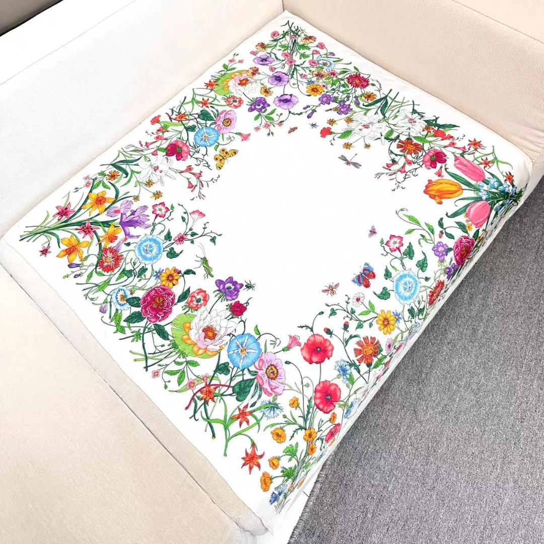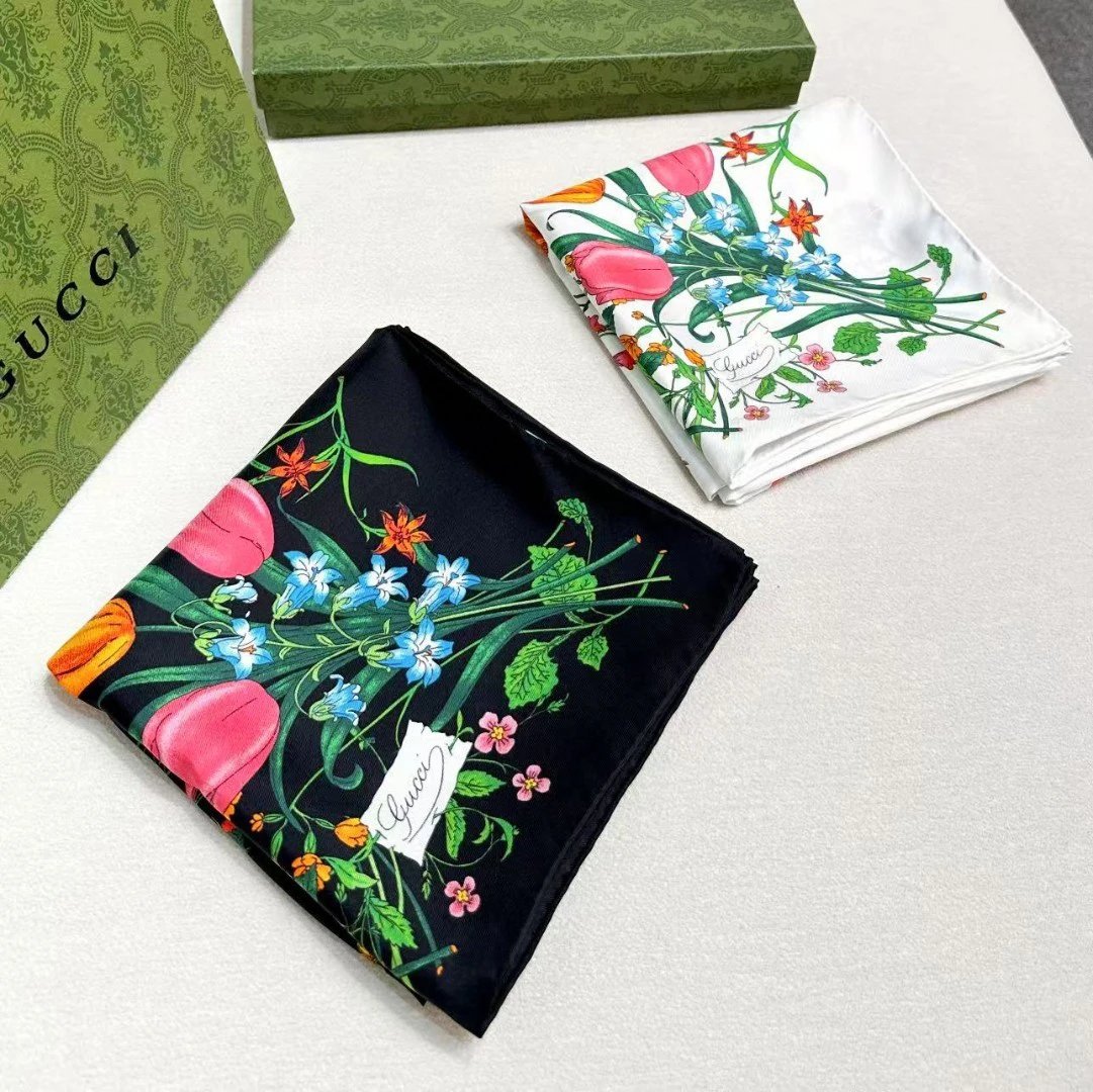 Color: Blue - High-quality Silk Handmade Square Scarf 90x90cm Classic Floral Pattern Injects The Same Romantic Atmosphere Into The New Series