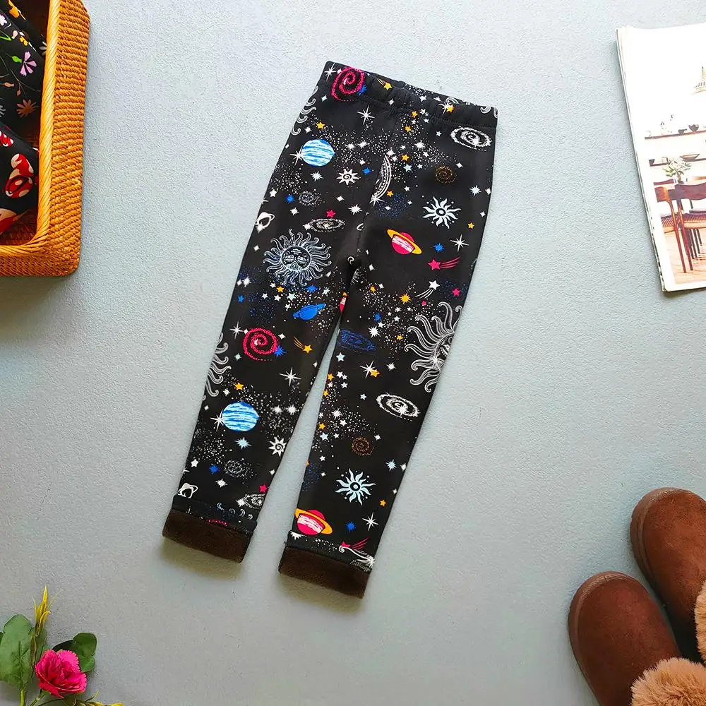 Color: Blue, Kid Size: 4T - Autumn Winter Print Flowers Thick Warm Kids Toddler Baby Girls Leggings Children's Pants