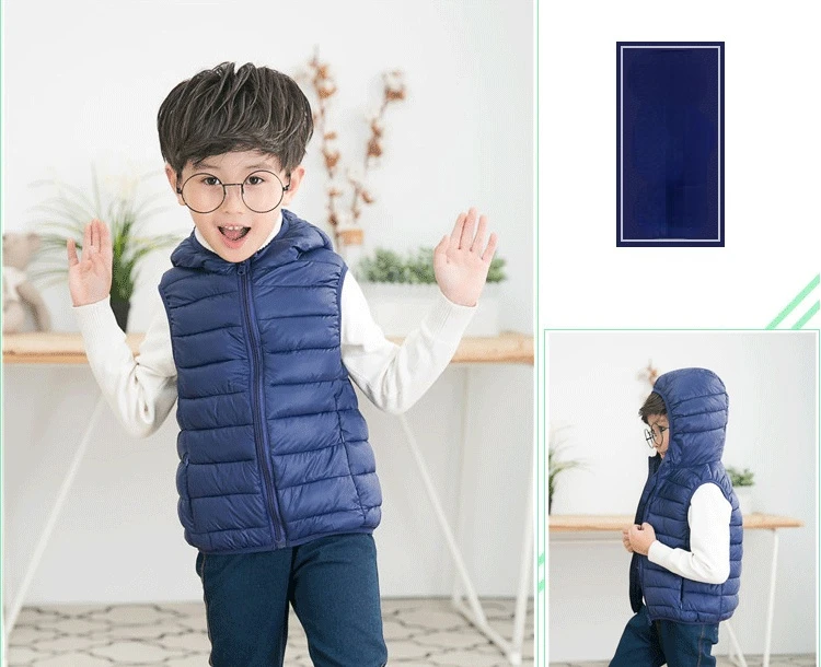 Color: Blue, Kid Size: 5T - Fall Solid Waistcoat Children Outerwear Winter Coats Kids Clothes Warm Boys and Girls Hooded Vest for Age 2-12 Years Old