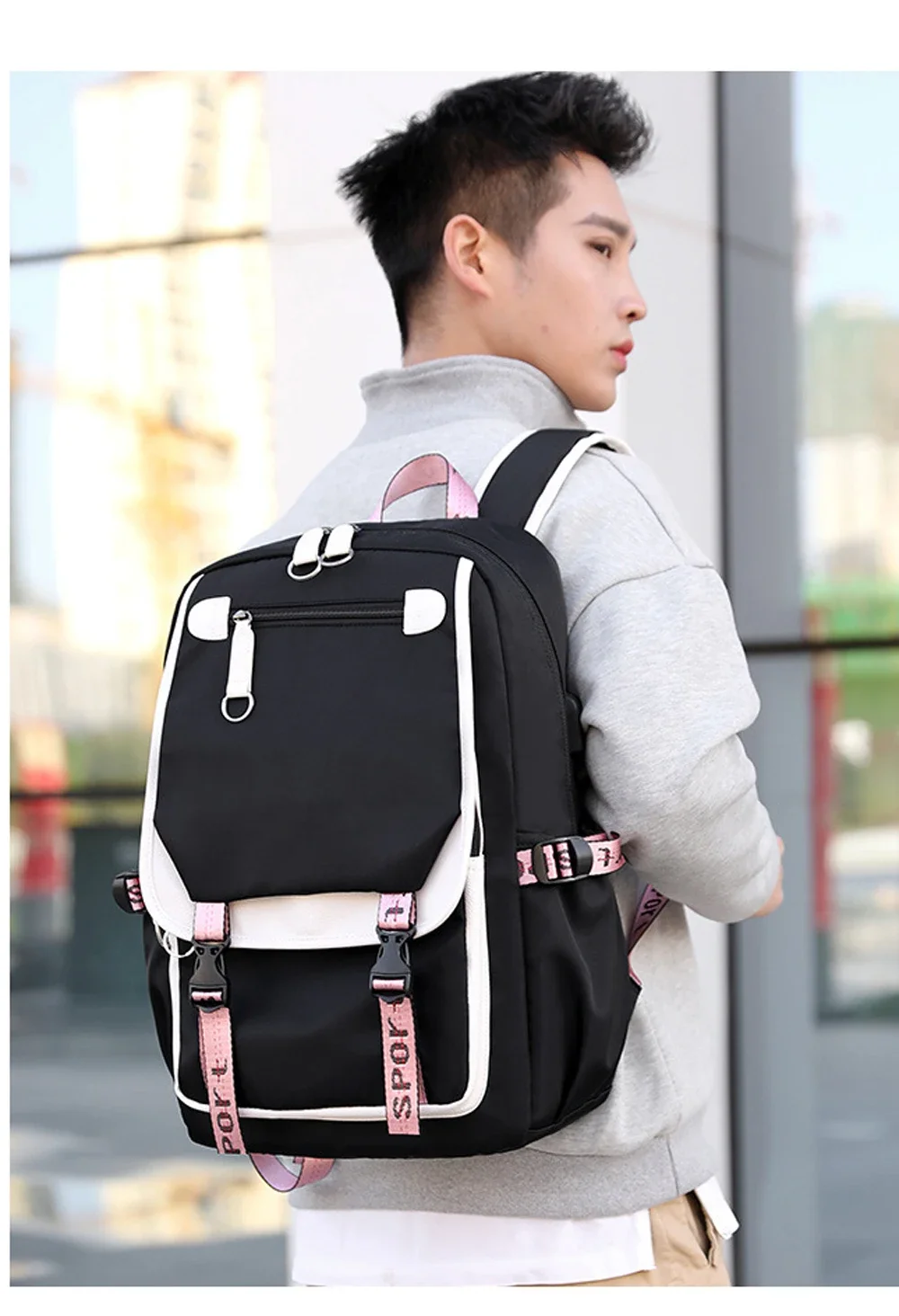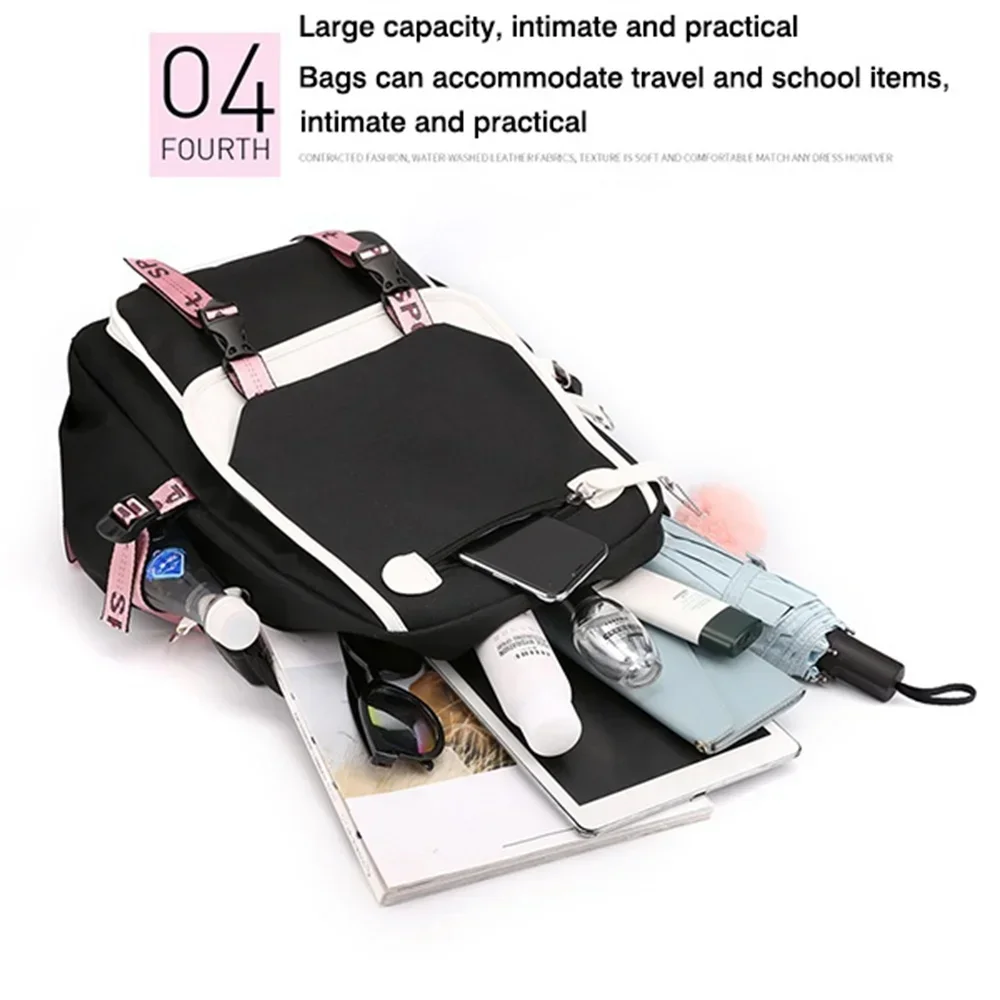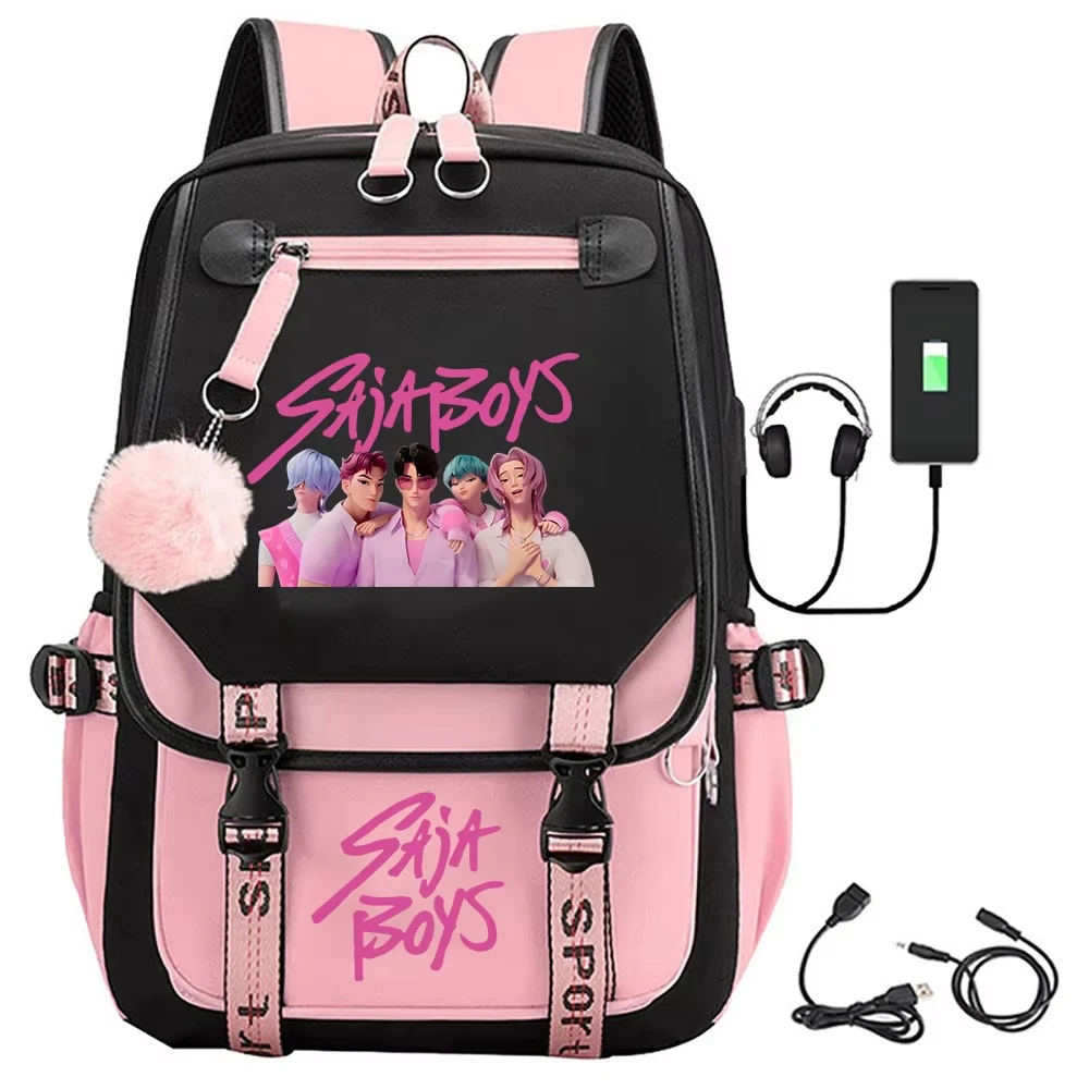 Color: Blue - KPop Demon Hunters Saja Boys Backpacks Teenagers Backpacks Hip Hop Gothic Schoolbag Backpacks