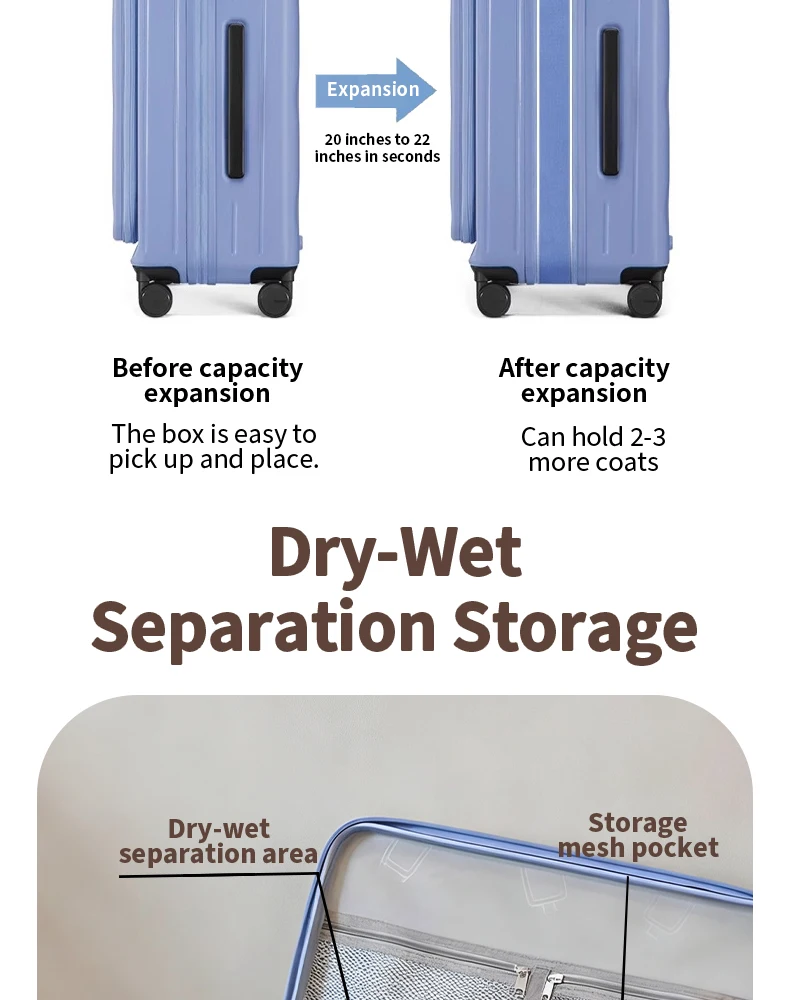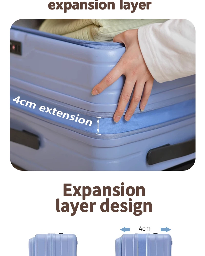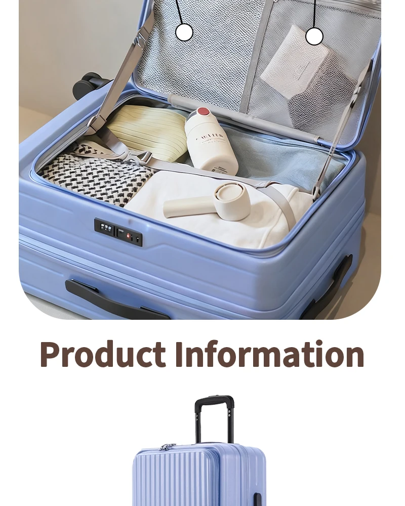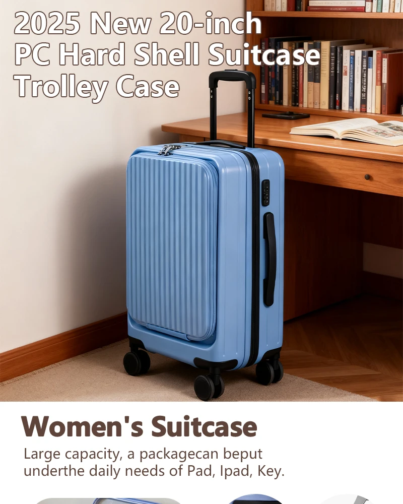 Color: Blue, Luggage Size: 15Inches 375mm, Ships From: CHINA - 2025 New 20-inch PC Hard Shell Lightweight Roller Travel Expandable Multifunctional Front Opening Suitcase Cabin Trolley Case