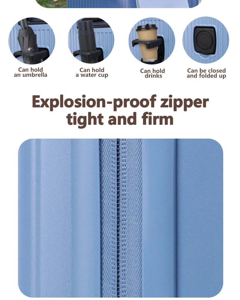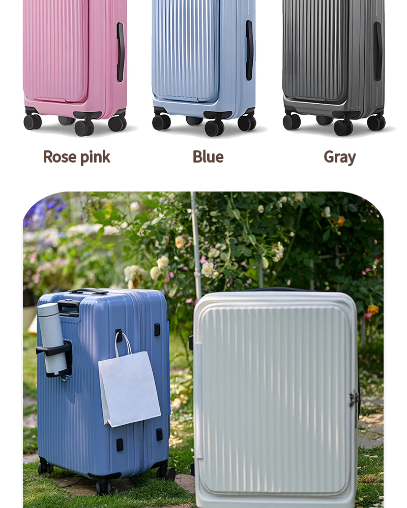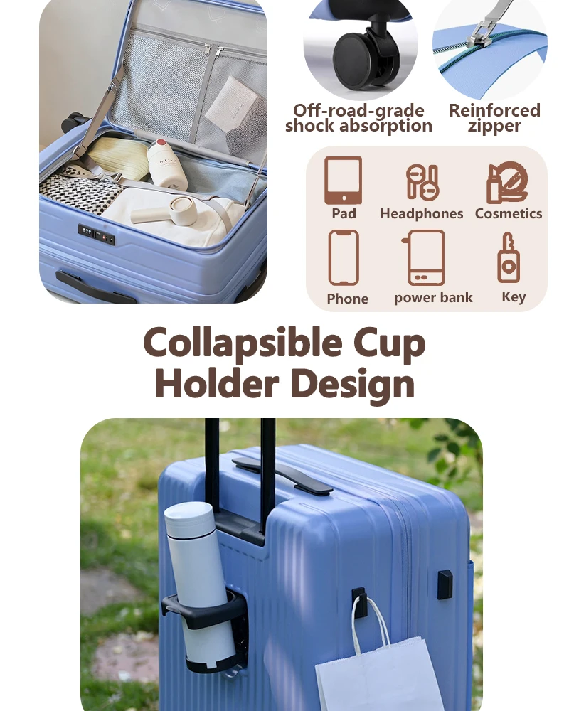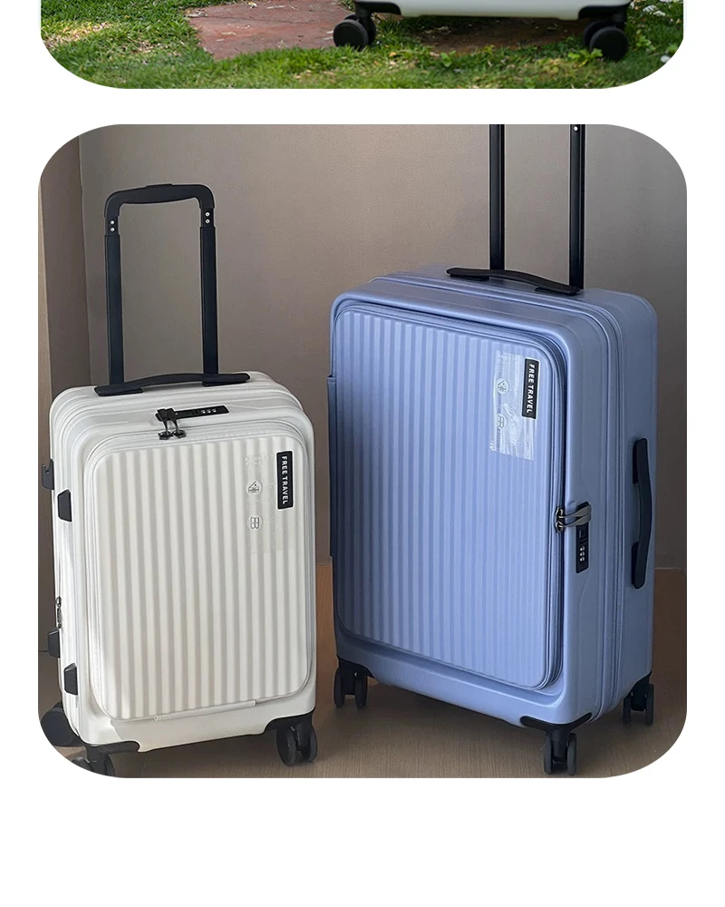 Color: Blue, Luggage Size: 15Inches 375mm, Ships From: CHINA - 2025 New 20-inch PC Hard Shell Lightweight Roller Travel Expandable Multifunctional Front Opening Suitcase Cabin Trolley Case