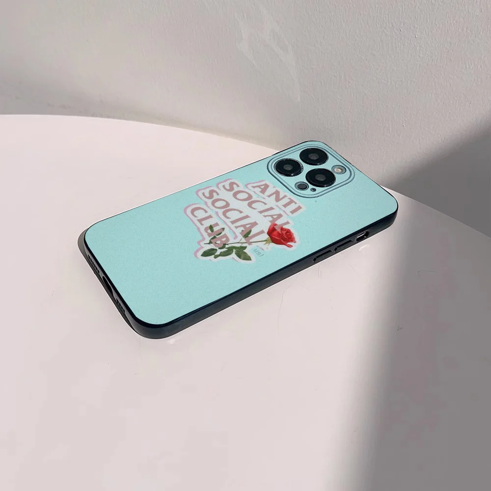 Color: Blue, Material: EVA - Anti Social Social Club Phone Case For IPhone 16 15 14 13 Pro Max 11 12 Mini X Xs XR Se 2022 Black Silicone Cover