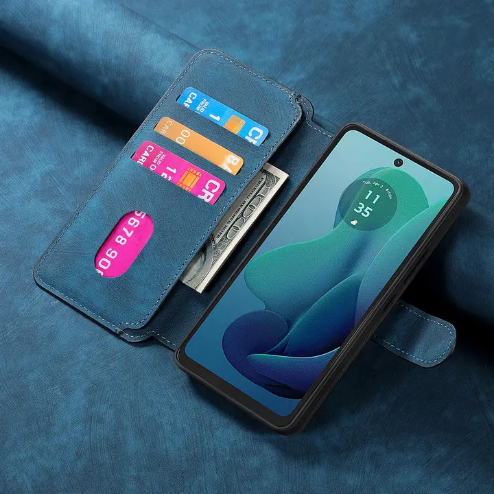 Color: Blue, Material: Nylon - Edge 50 60 Fusion 5G Flip Case For Motorola Edge 60 Pro 2In1 Detachable Leather Wallet Funda Moto Edge 50 Neo 60 Pro S50 Cover
