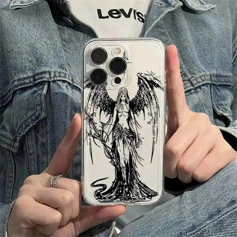 Color: Blue, Material: Polyester - luxury bloodsacrifice Black Angel Death demon Phone Case For iPhone 15 14 13 12 11 Mini Pro Max XR XSMax 7 8 Plus SE Clear Cover