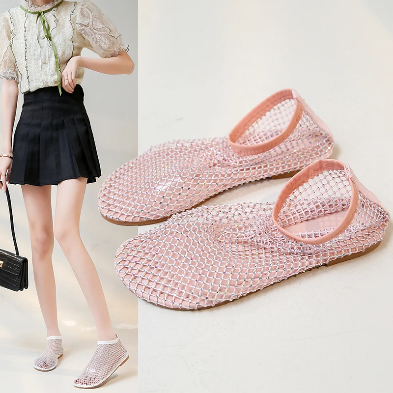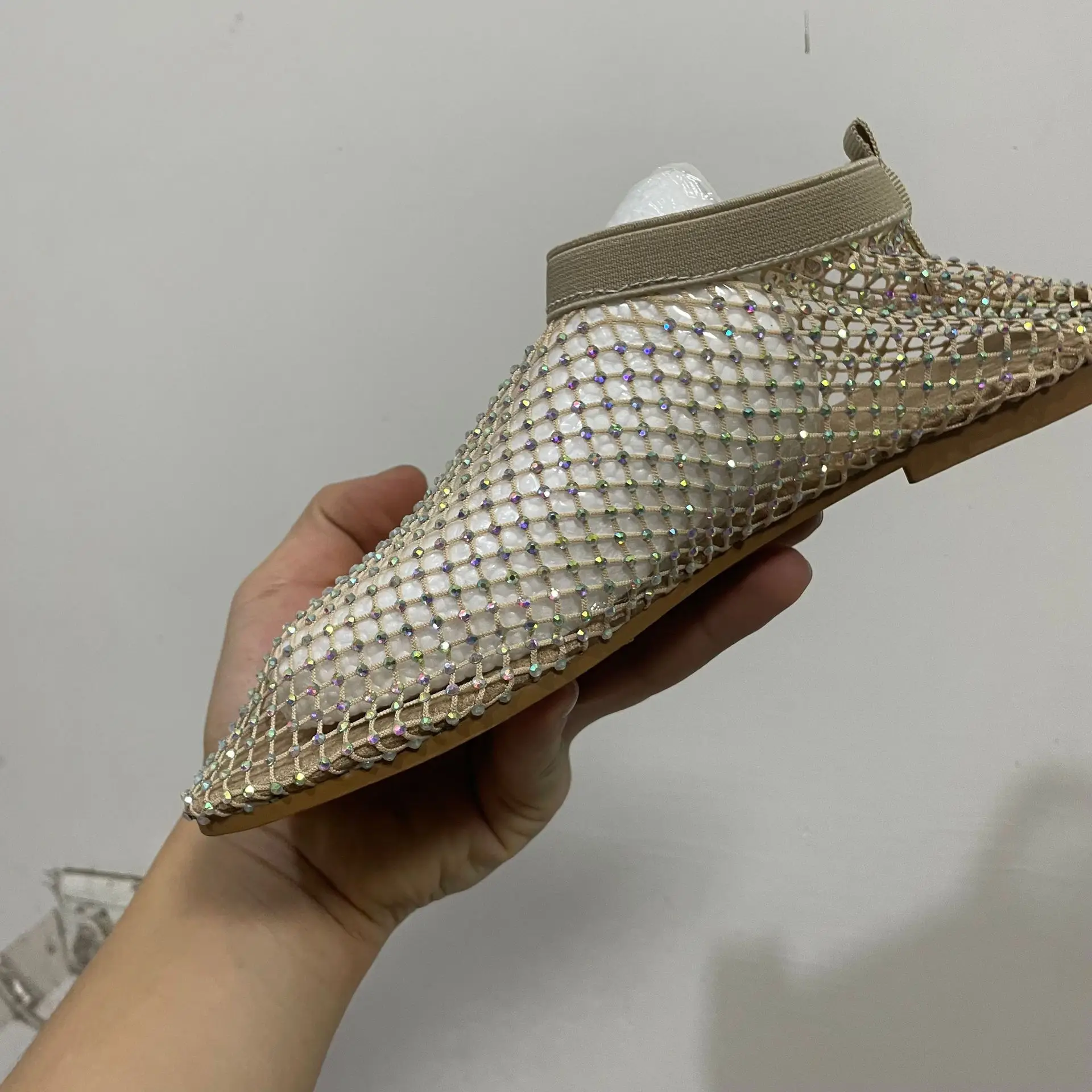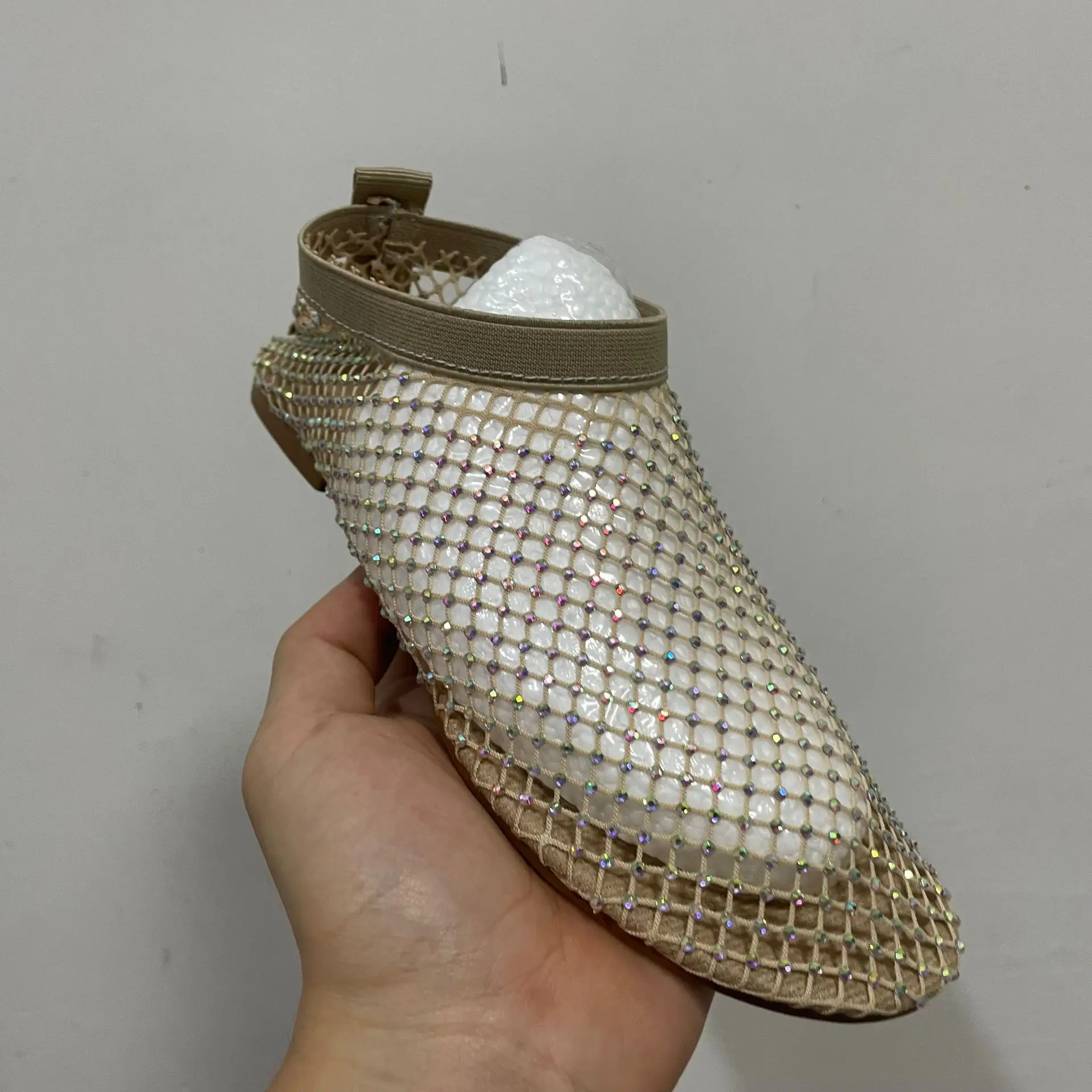 Color: Blue, Shoe Size: 37 - Women Summer New Fashion Mesh Luxurious Rhinestone Designer Simple Solid Color Sandals Daily Versatile Round Toe Womens Sandal