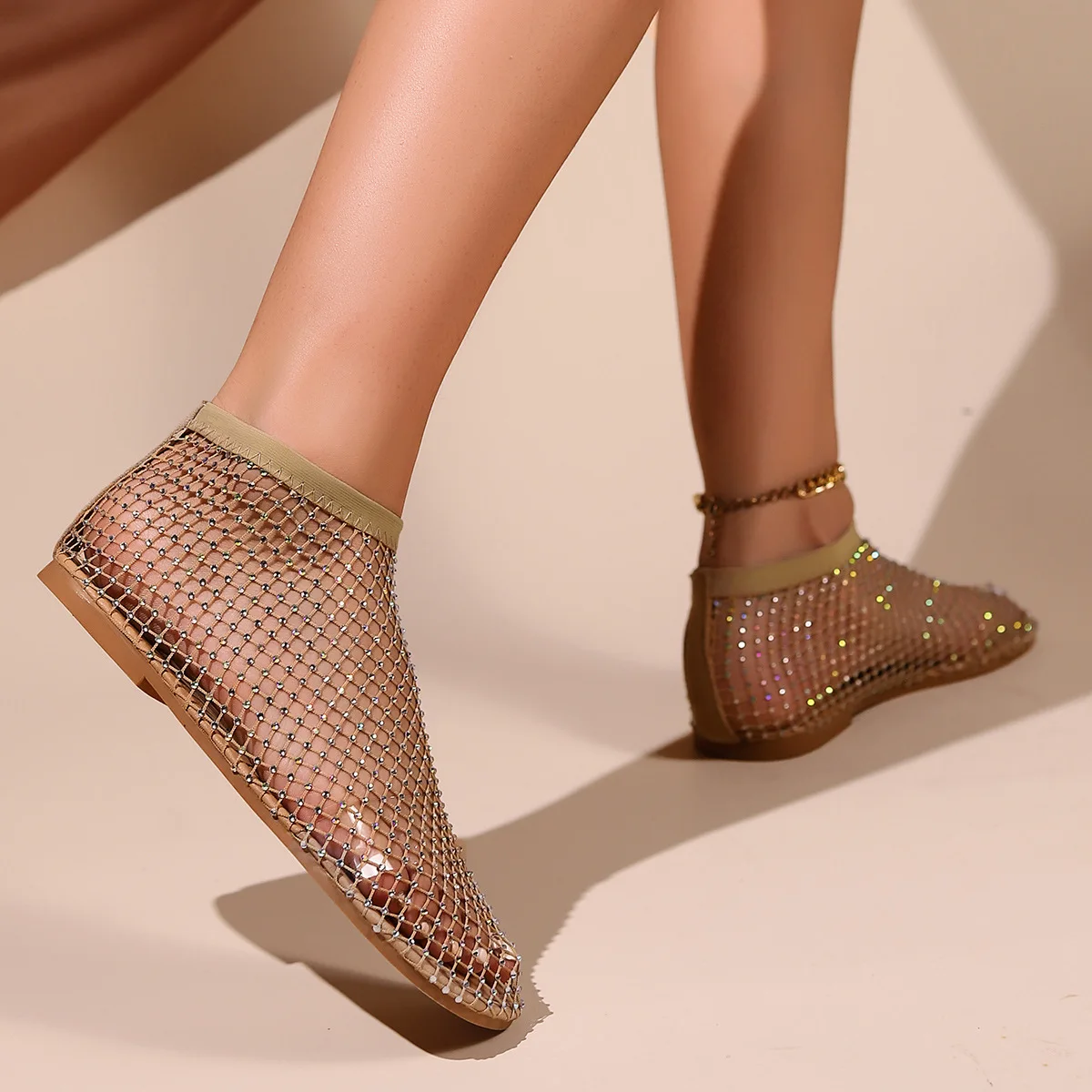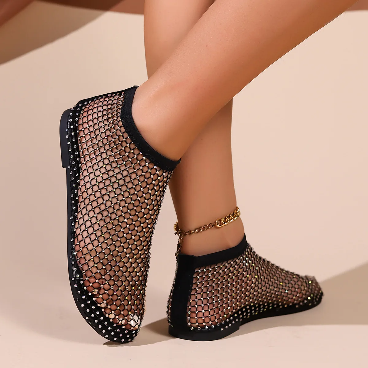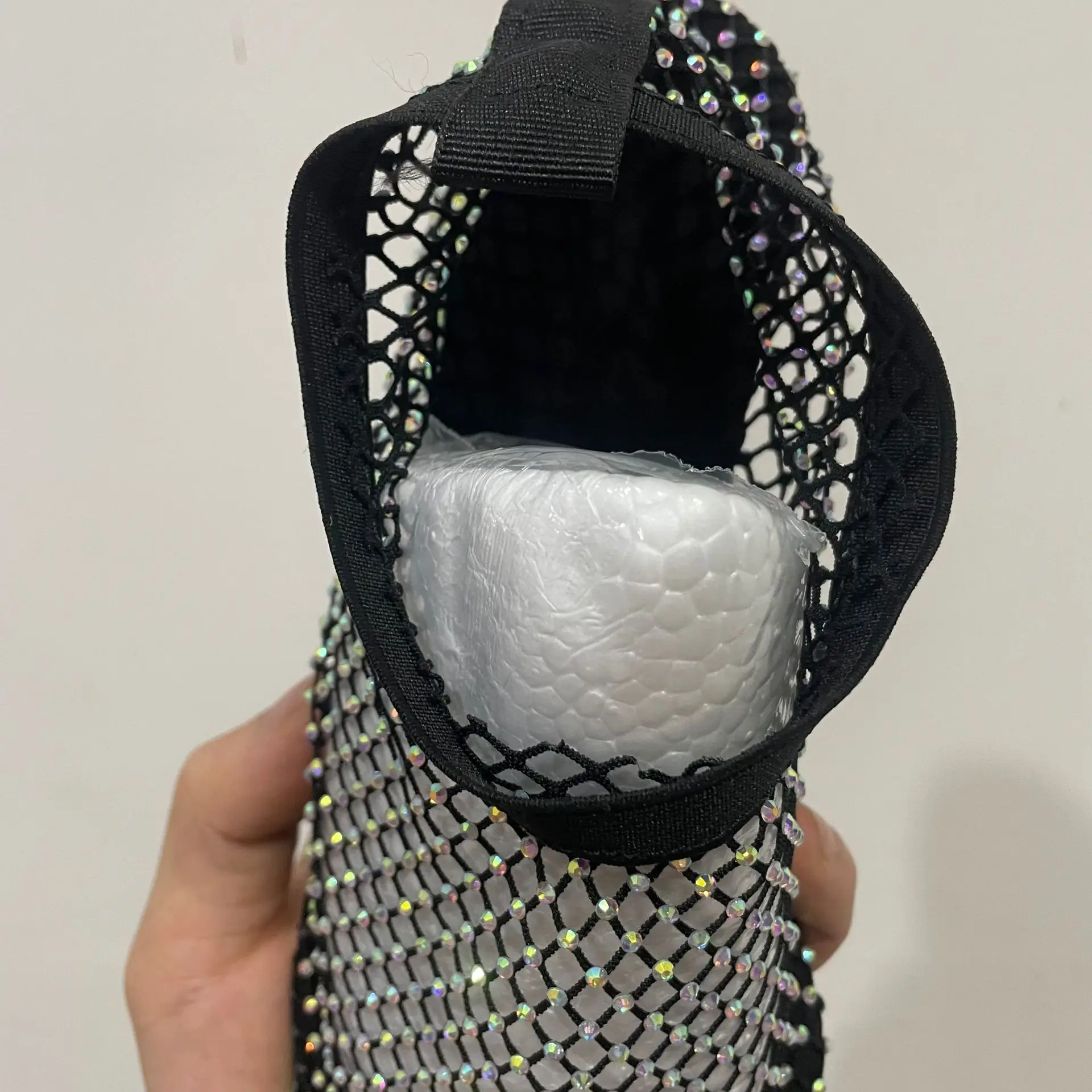 Color: Blue, Shoe Size: 37 - Women Summer New Fashion Mesh Luxurious Rhinestone Designer Simple Solid Color Sandals Daily Versatile Round Toe Womens Sandal