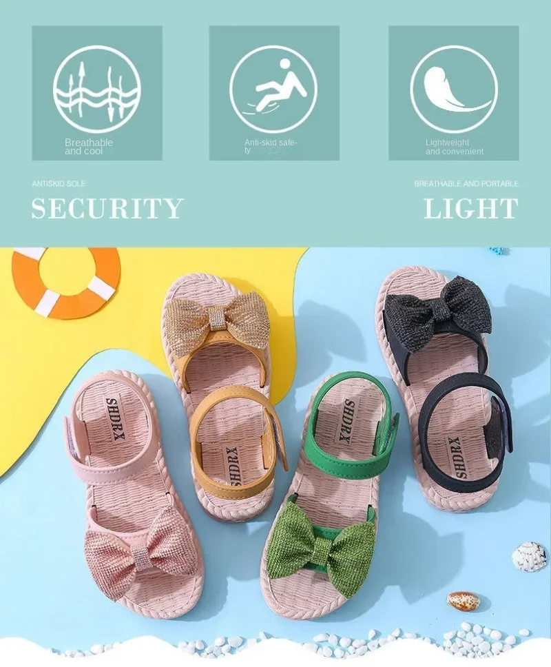 Color: Blue, Shoe Size: 6.5 - Girls Sandals 2024 Summer Princess Children Sandals Bow Tie Girl Shoes Fashion Casual Non Slip Kids Beach Shoes