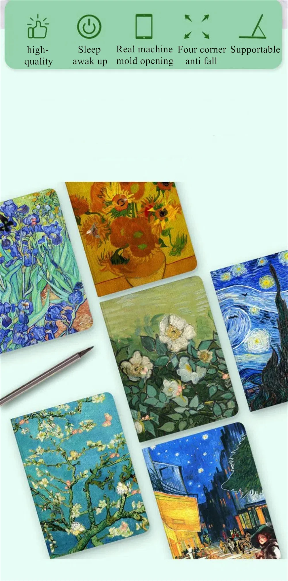 Color: Blue, Size: EIGHTEEN - Case For iPAD 10 9 8 7 6 5 th Generation Pro 11 12.9 10.5 Air 5 4 3 2 Mini 6 Funda Cover Luxury Van Gogh Oil Painting Flower Art