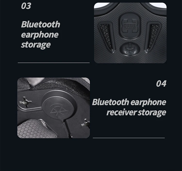 5.The front mouth vent forcing fresh air in and hot moist air out,keeps air flowing;Built-in Bluetooth headset slot