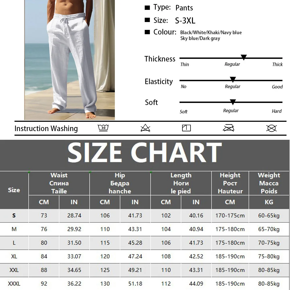 4.Clothing care - Men's linen drawstring pants are recommended for hand washing, normal dry cleaning, or machine washing. Please refer to our size chart to ensure a snug fit.
