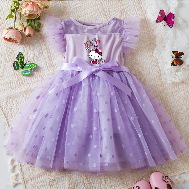 Color: Blue, Size: XL - Hello Kitty 2-6Y Baby Girl Dress Princess Mesh Skirt Summer Sleeveless Wedding Party Dresses for Girls Summer