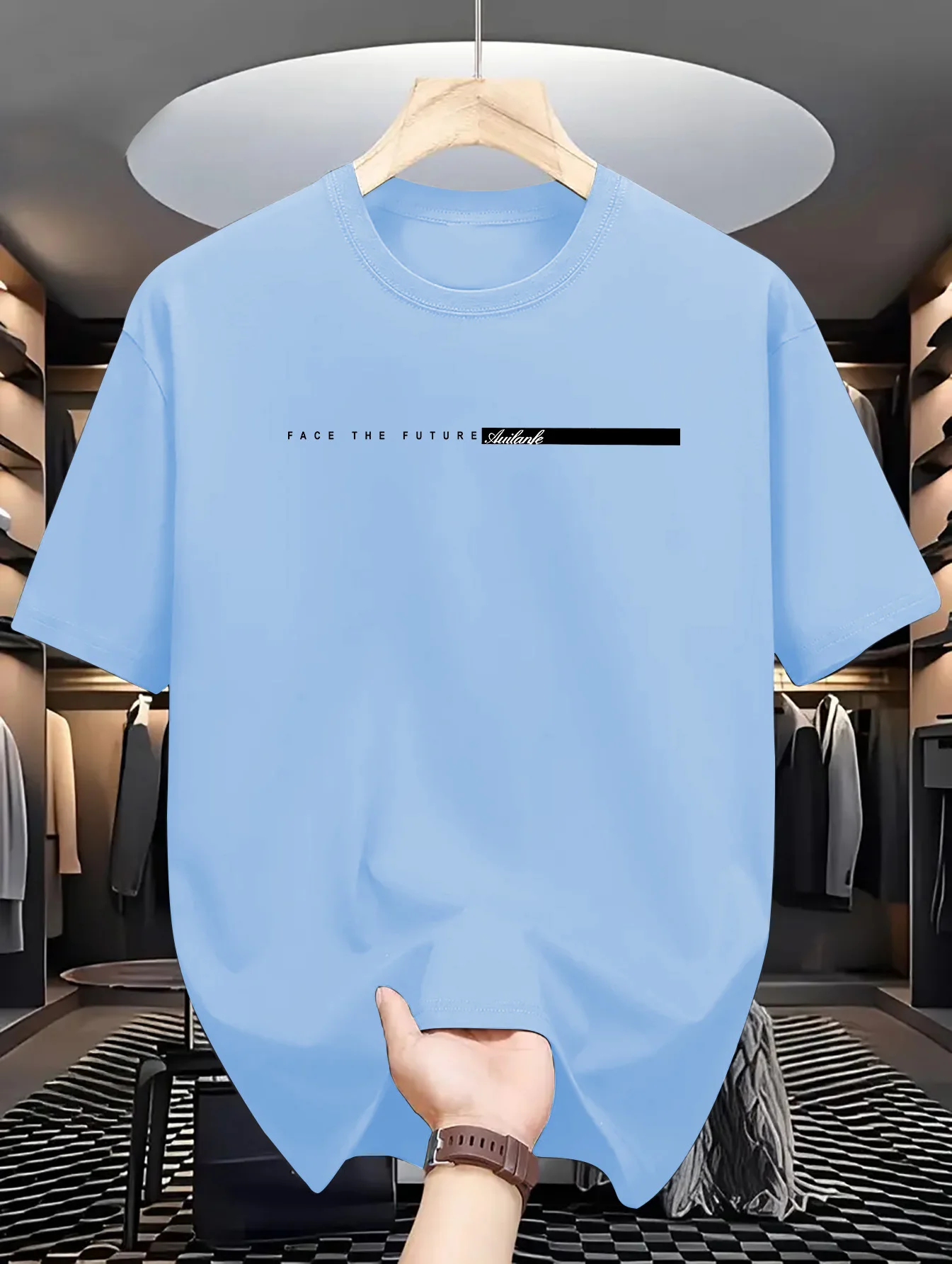 Color: Blue, Size: XS - Summer men's 100% cotton casual loose fit large letter print round neck short sleeved T-shirt top High Street Unisex style
