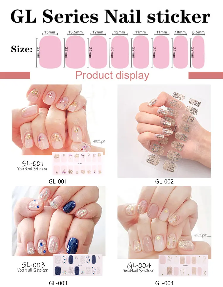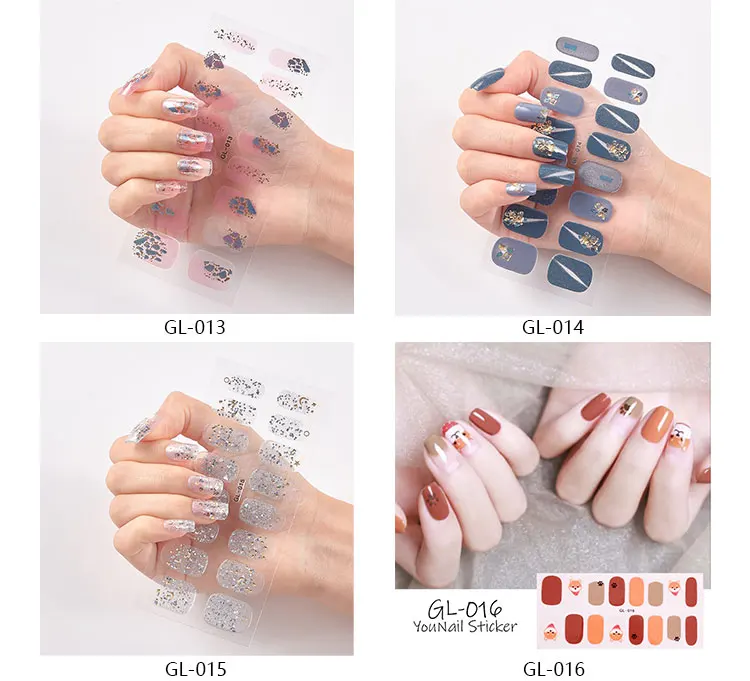 Color: Bronze red - 16 Tips/Sheet Patterned Nails With Creative Nail Polish Nail Art Stickers 2020 Temporary Tattoos Kids Full Cover Nail Stickers