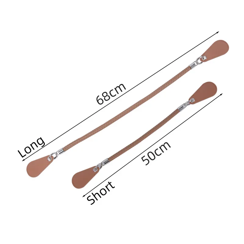 Length: short one about 50cm,long one about 68cm short size usually bu used for hand-hold, long size can be for shoulder or underarm.