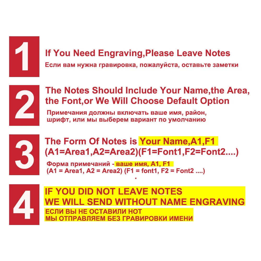 2. Please leave a note or send us a message if you want name engraving.or we will send WITHOUT NAME or we will engrave the name of your address.