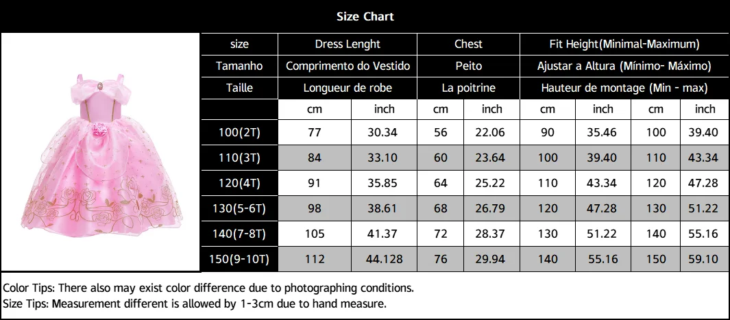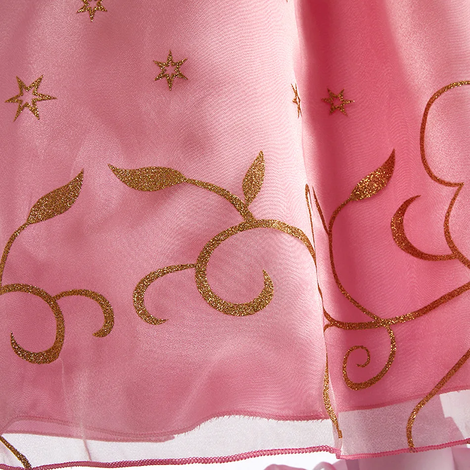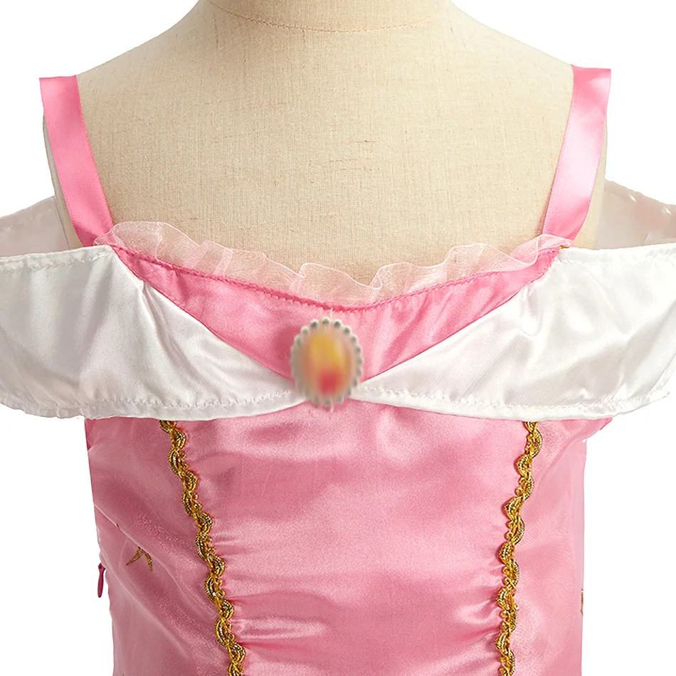 Color: Brown, Kid Size: 2T - Children Halloween Disguise Aurora Cinderella Disney Princess Costume Festival Dress up Kids Girls Sleeping Beauty Frock 1-12Yrs