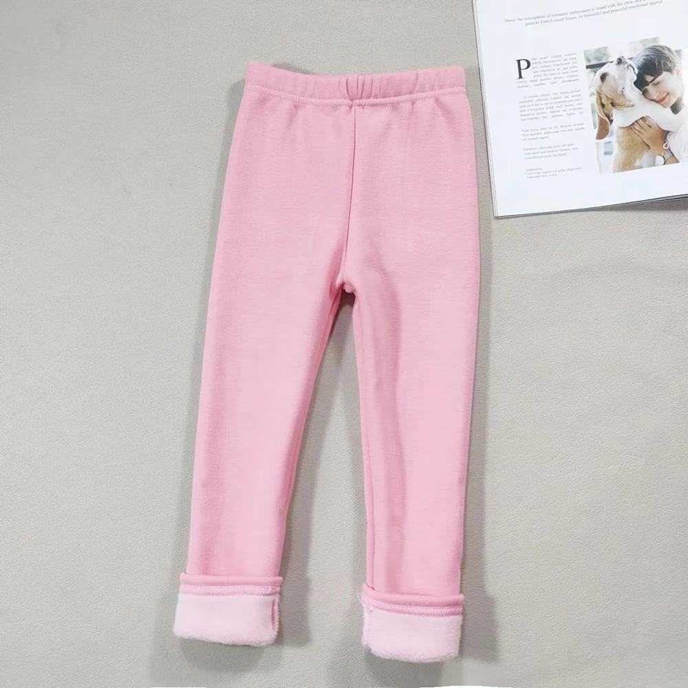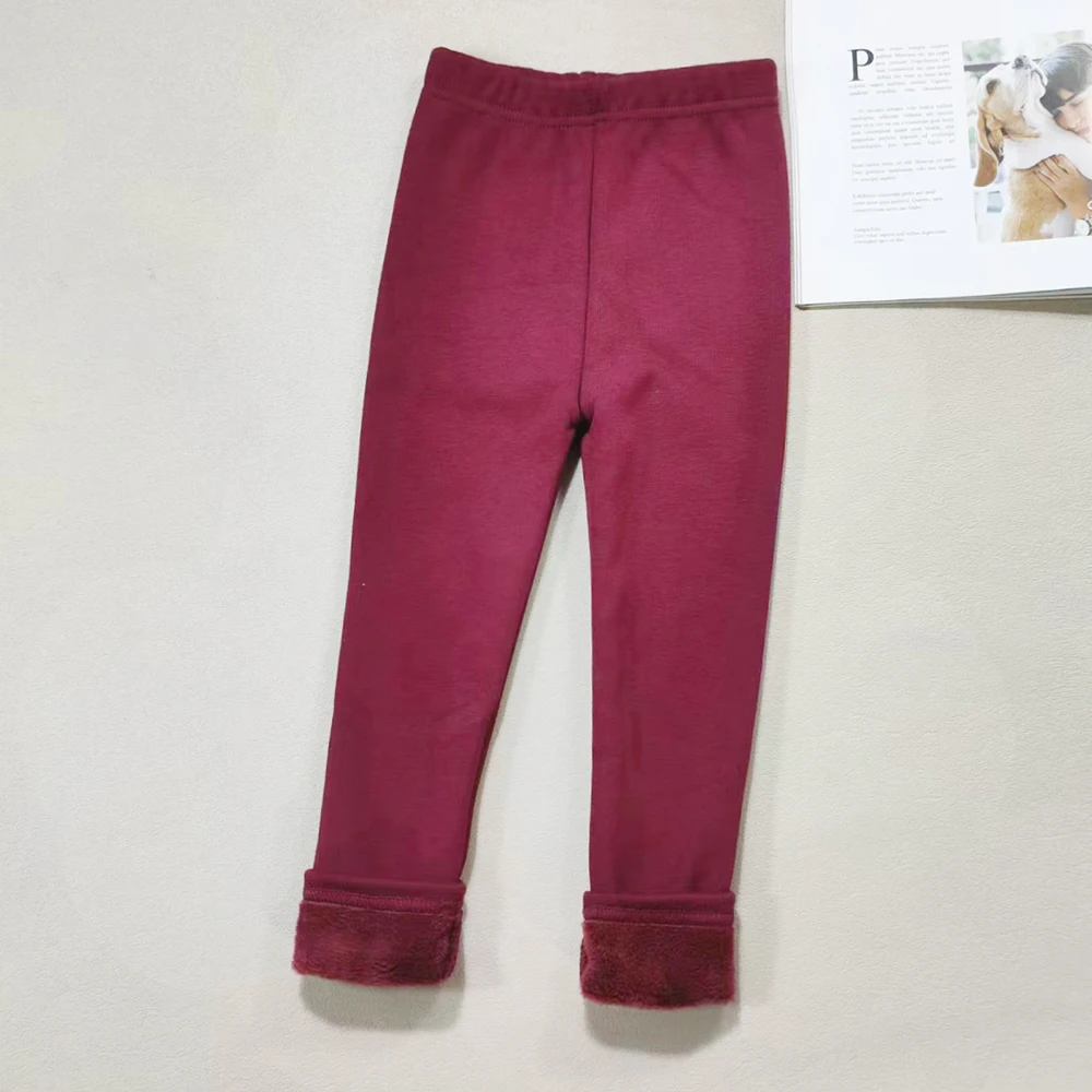 Color: Brown, Kid Size: 5T - 2024 Girls' Pants Children's Winter Thickened Warm Pants Warm Elastic Pink Navy Blue Underpants Boys' Pants