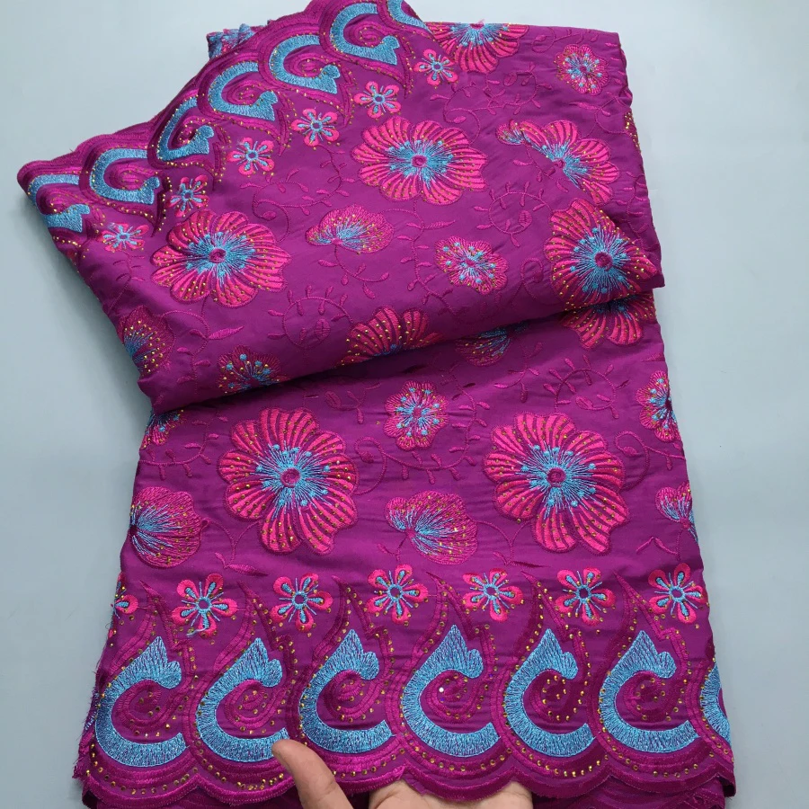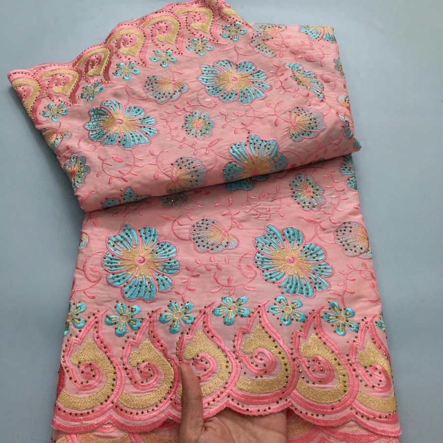 Color: BROWN, length: 5 yards, Width: 120cm - Green Nigerian Embroidered Cotton Lace Fabric 2025 High Quality 5 Yards African Swiss Lace Fabric Party Dress for Women A4210