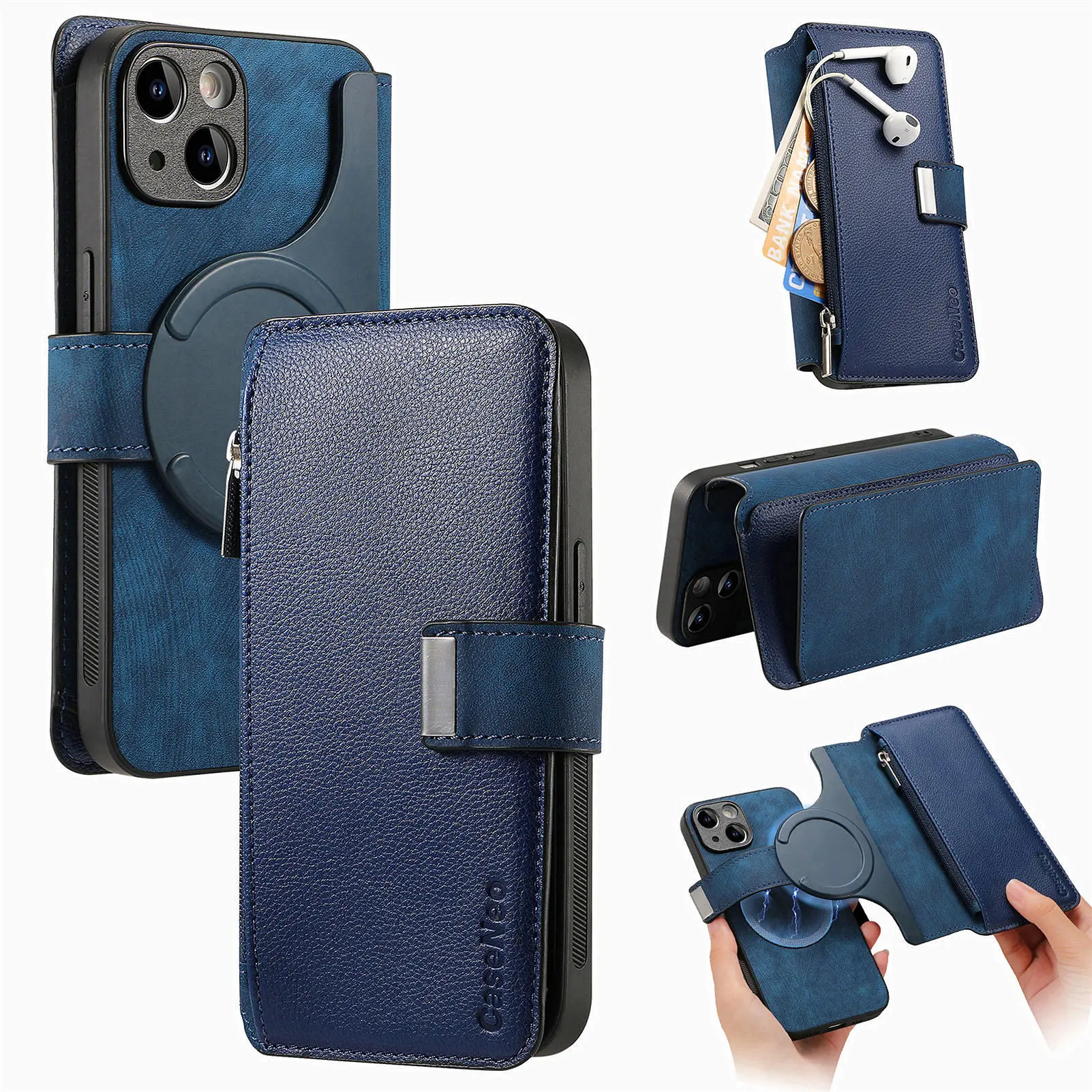 Feature 1: Zipper Wallet / flip case with 6 card slots + 1 cash slot+Zipper Pocket