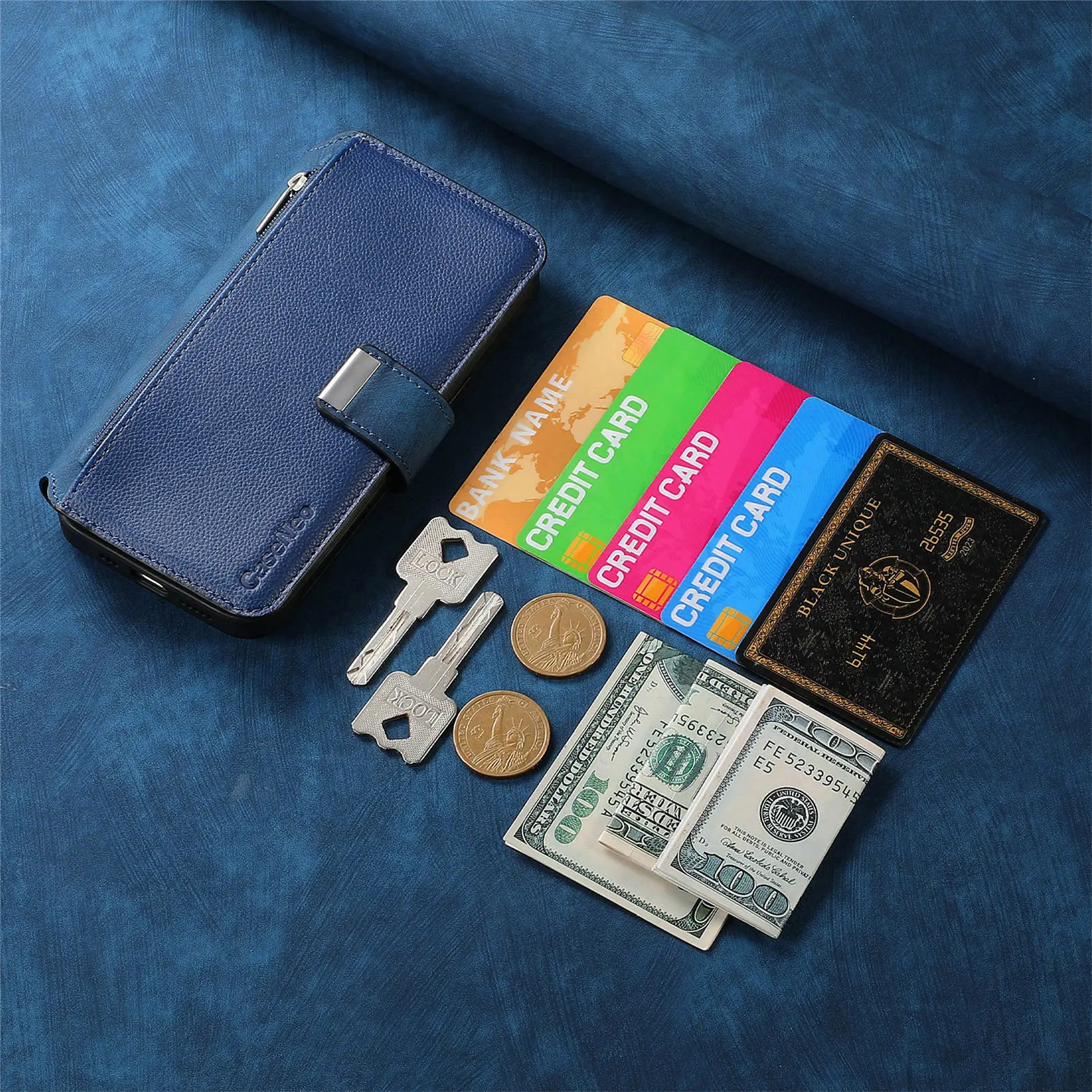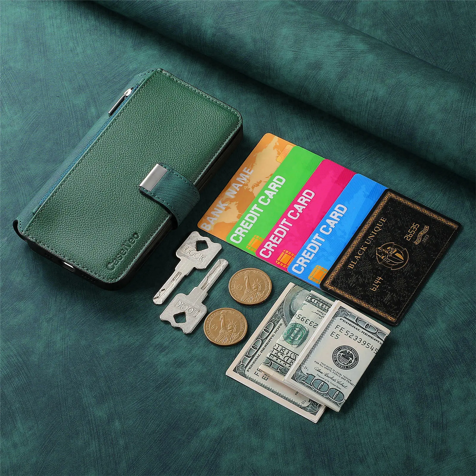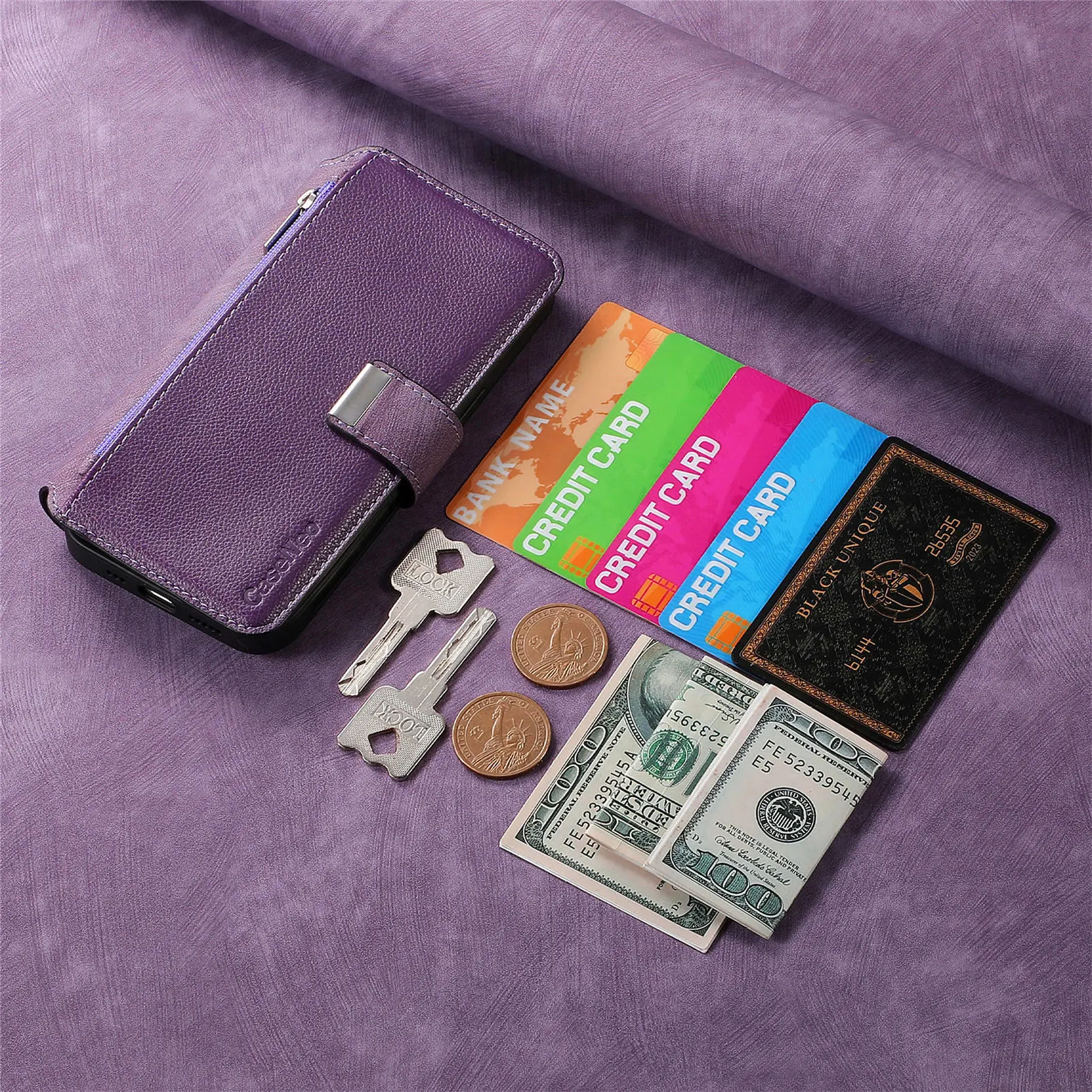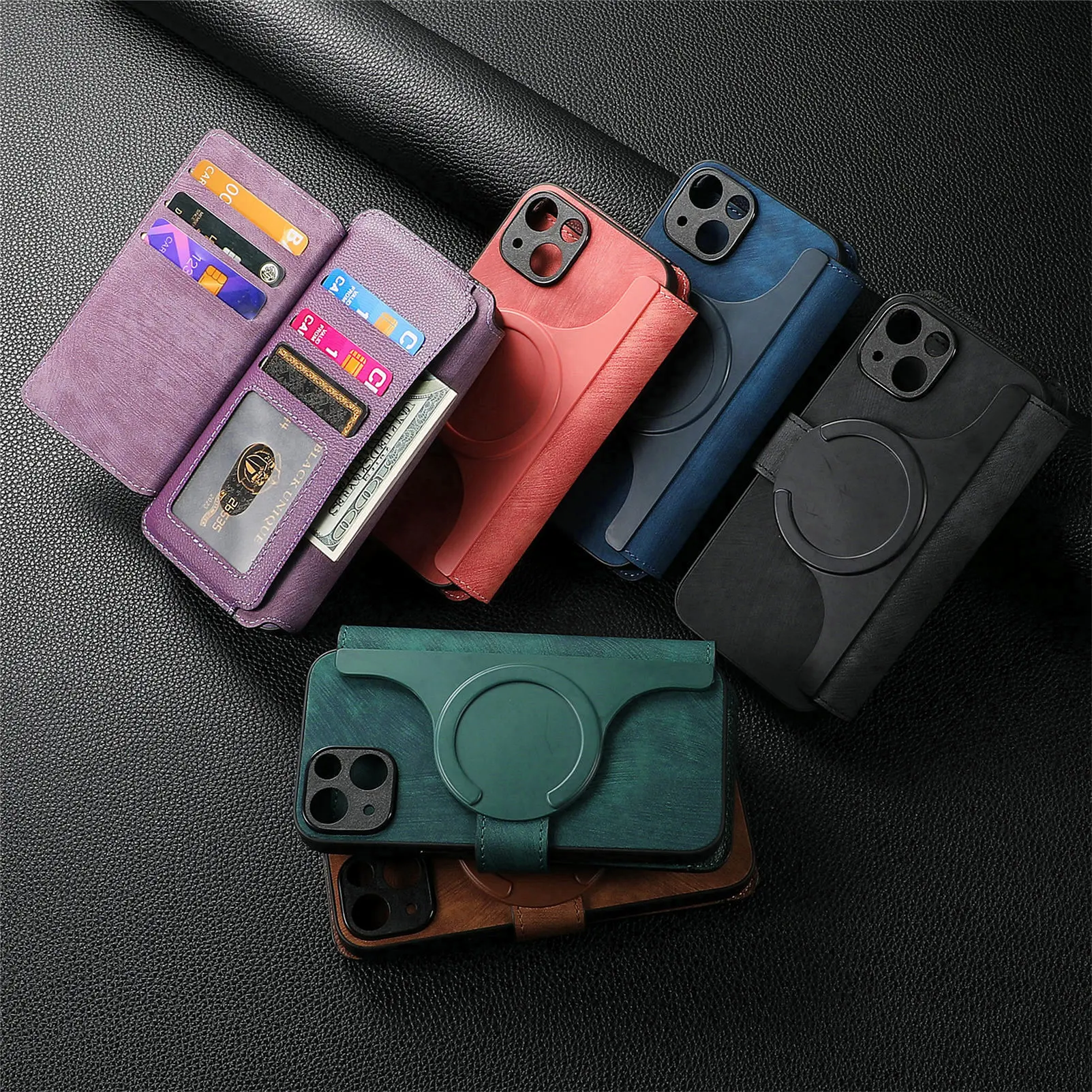 Features: Come with 6 card slots + 1 cash slots + 1 zipper pocket +magnetic closure