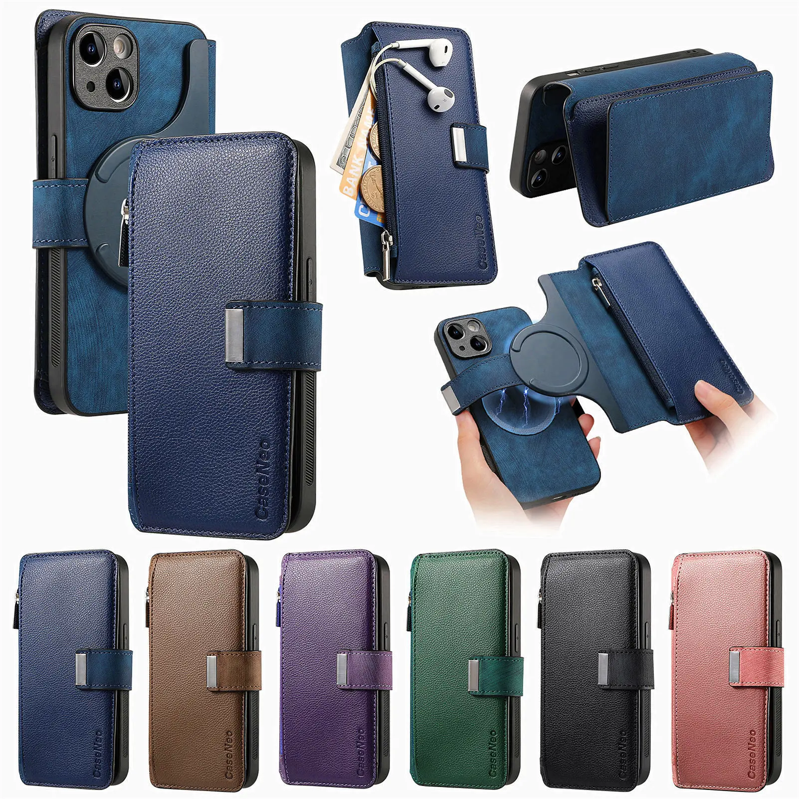 Feature 1: Zipper Wallet / flip case with 6 card slots + 1 cash slot+Zipper Pocket