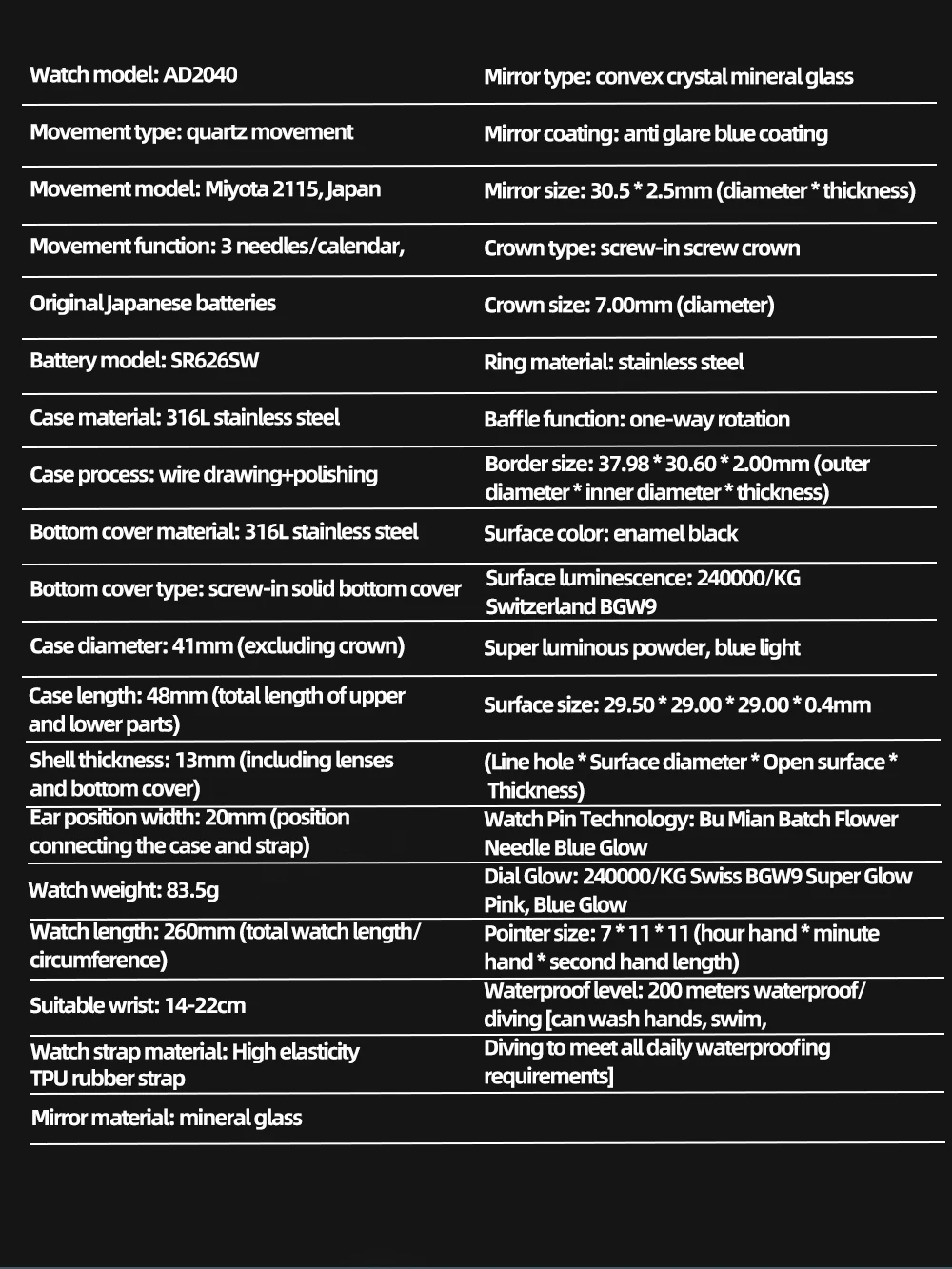 Waterproof level: 200 meters waterproof/diving [capable of washing hands, swimming, diving, meeting all daily waterproof requirements]