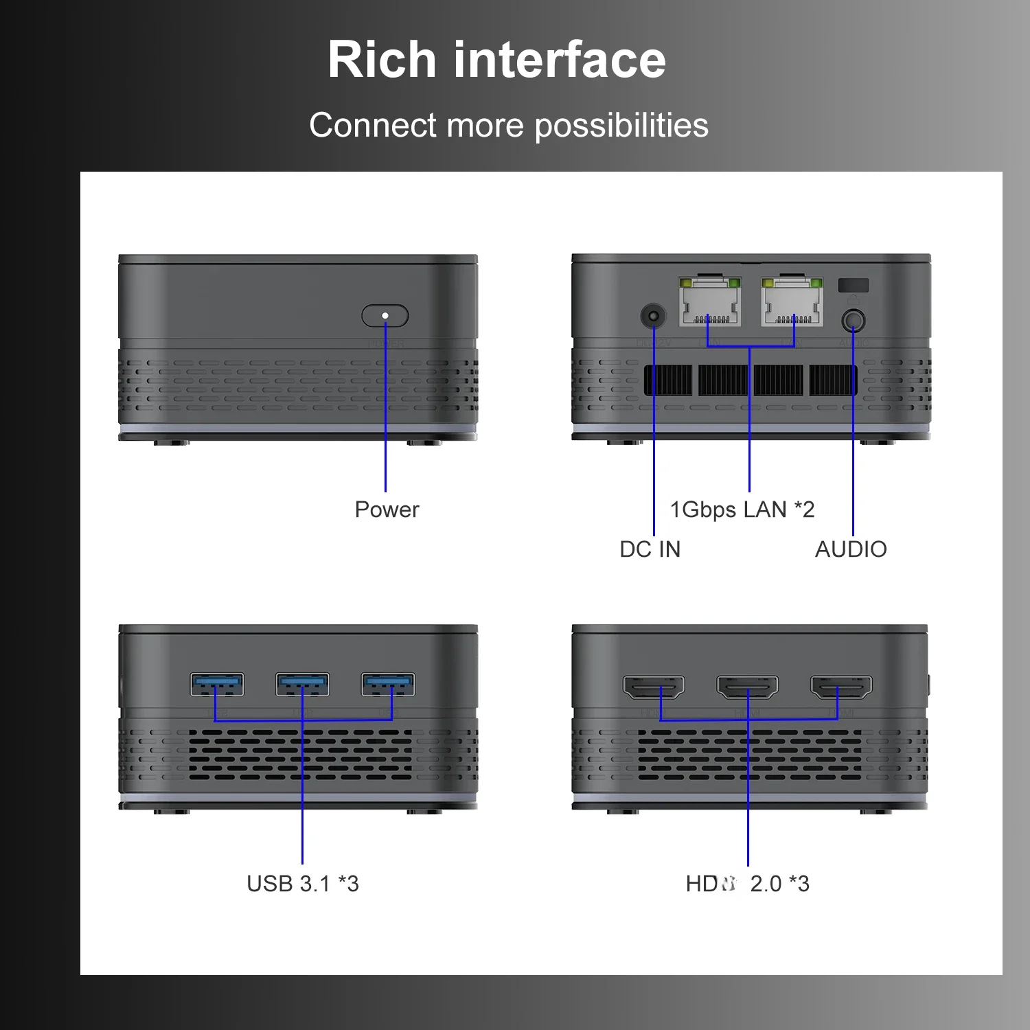 Output: HD 2.0 x3; Support three-screen Output (Clone or extend)