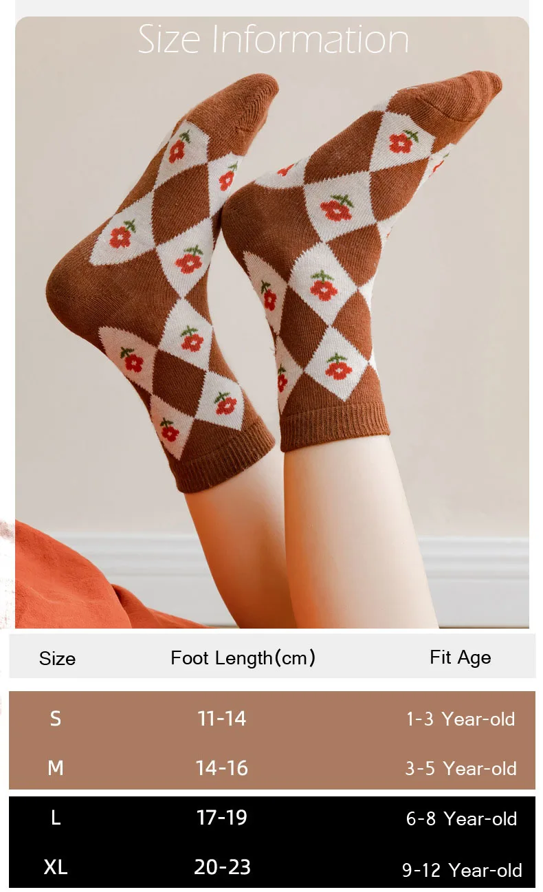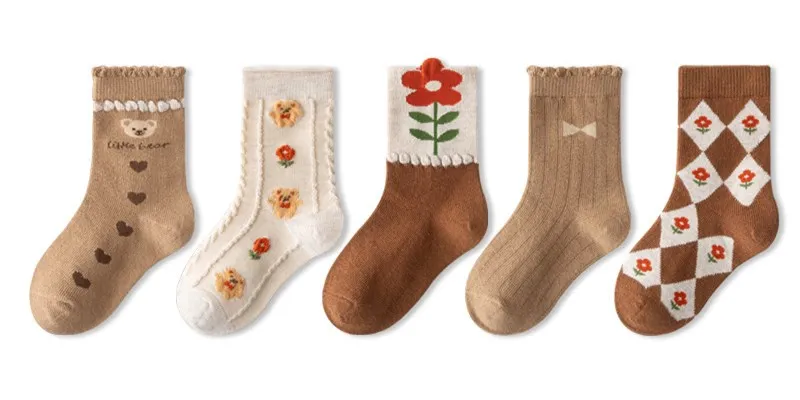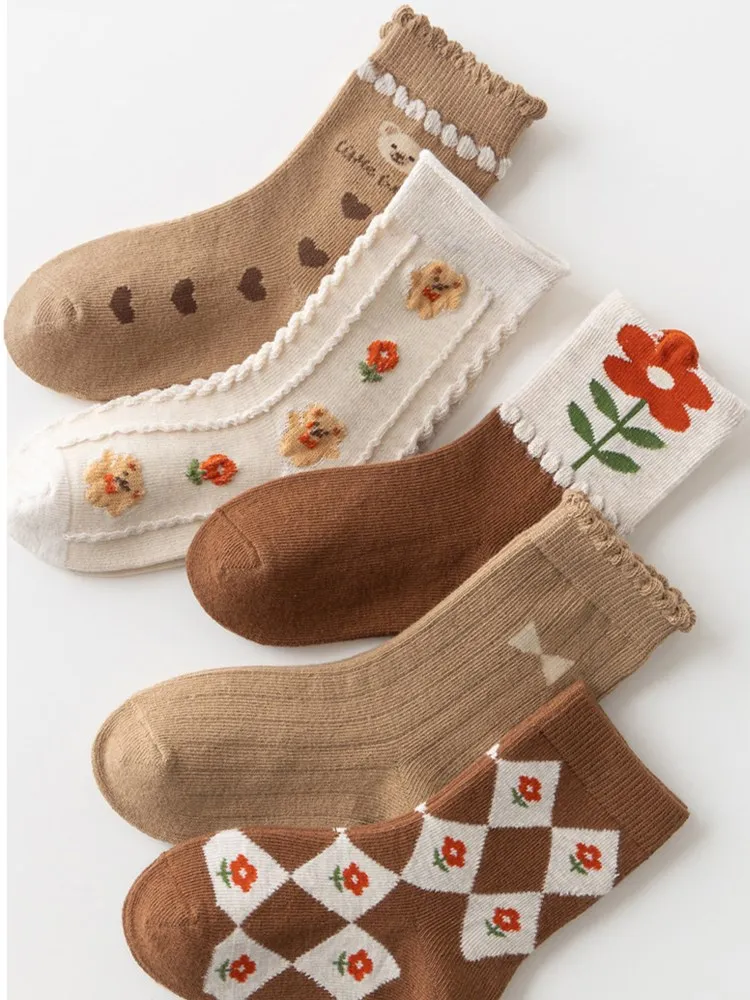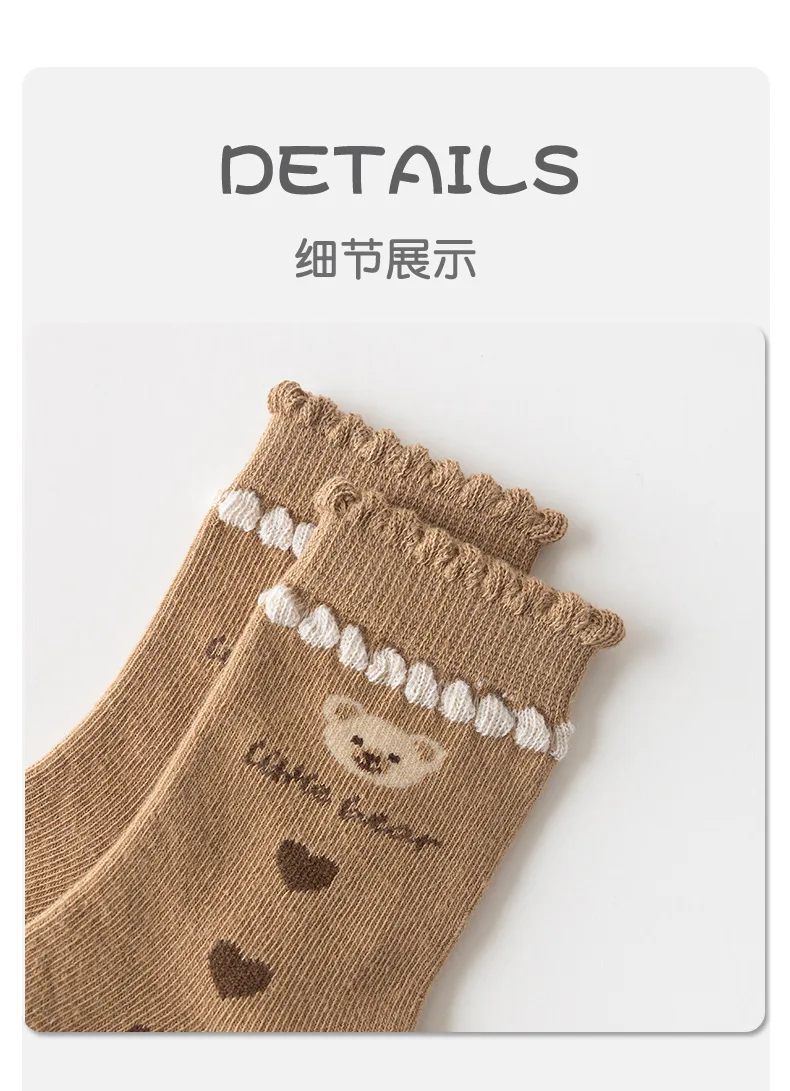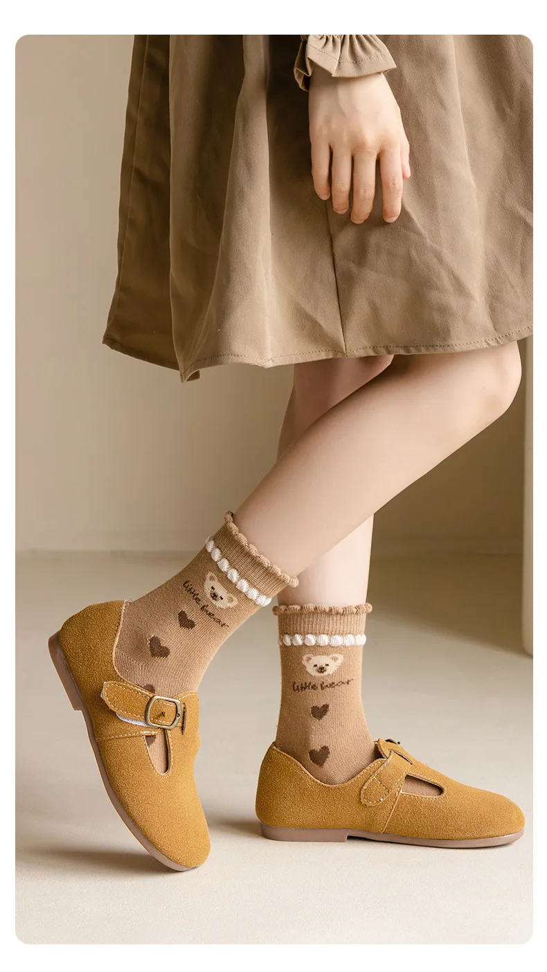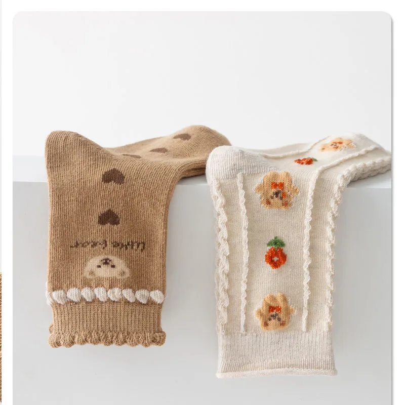 Color: Brown, Size: 10-12T - Kids Socks Warm Cotton Autumn Spring Socks Girls Calf Length Coffee Khaki Bear Socks Baby Sock