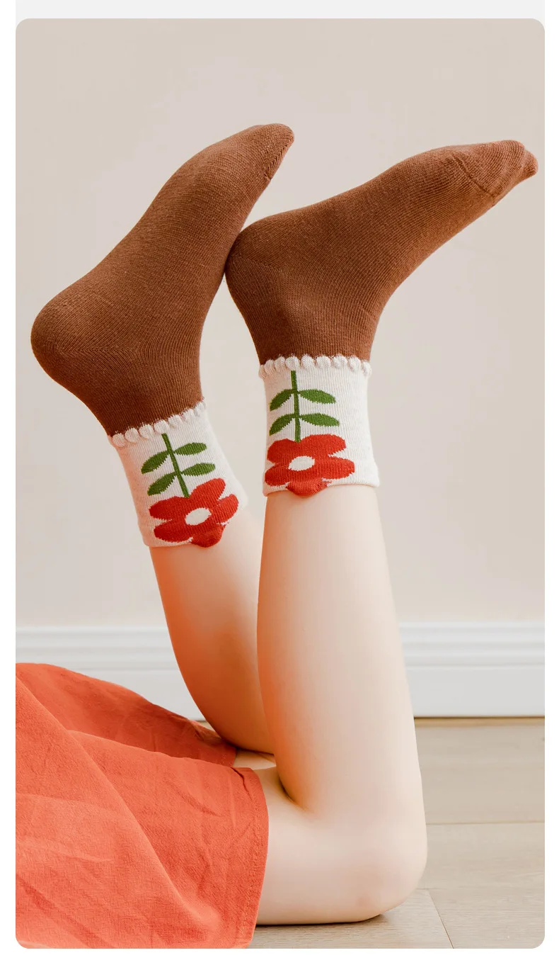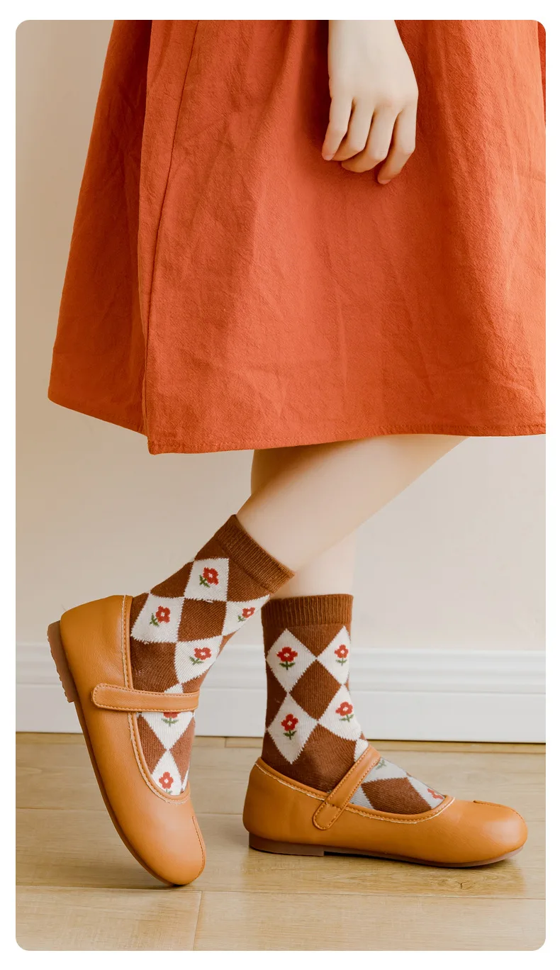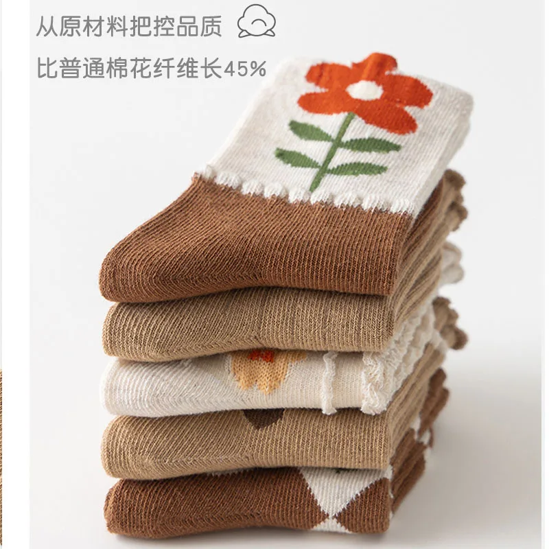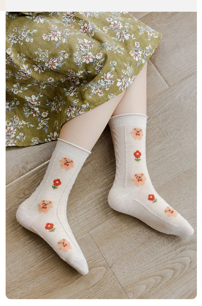 Color: Brown, Size: 10-12T - Kids Socks Warm Cotton Autumn Spring Socks Girls Calf Length Coffee Khaki Bear Socks Baby Sock