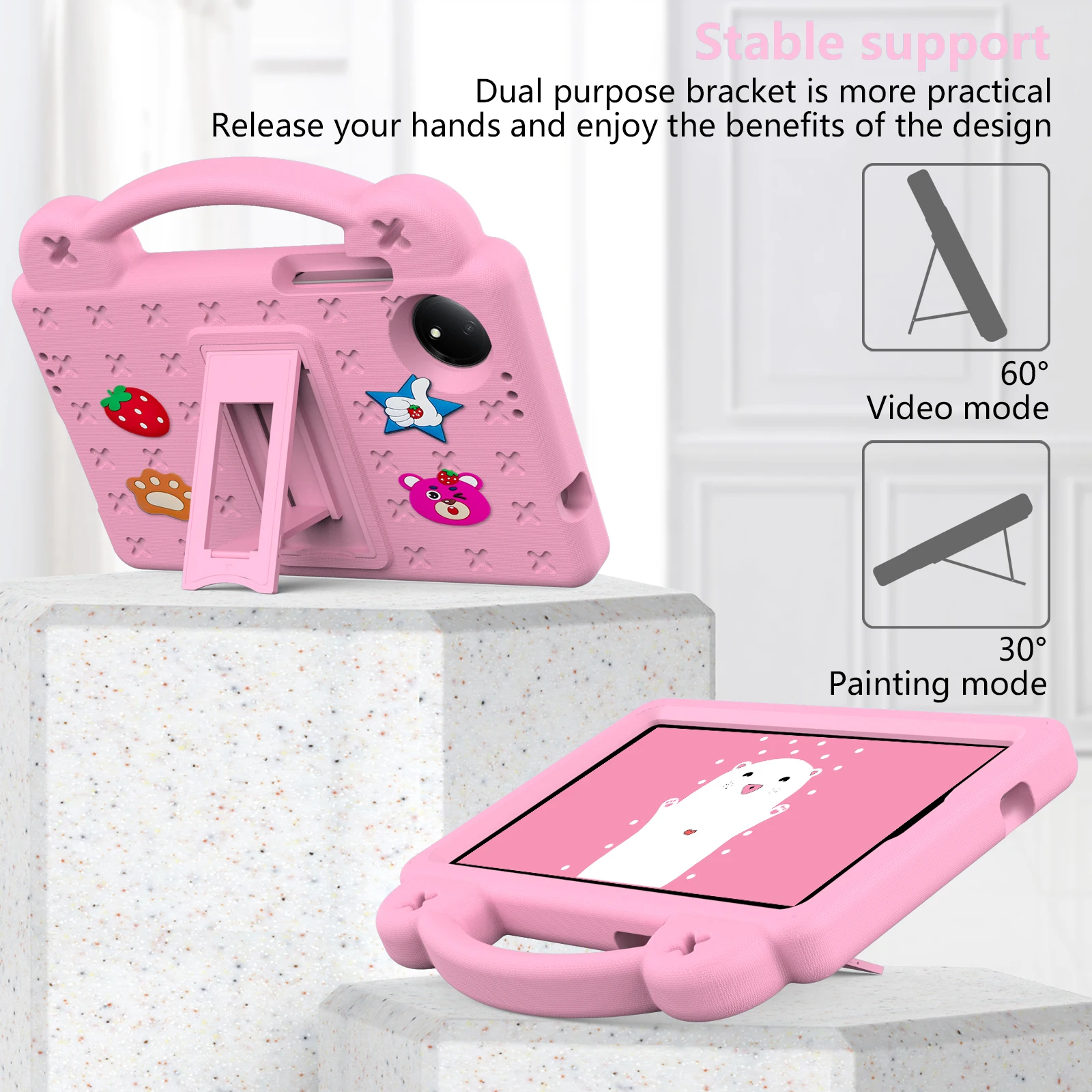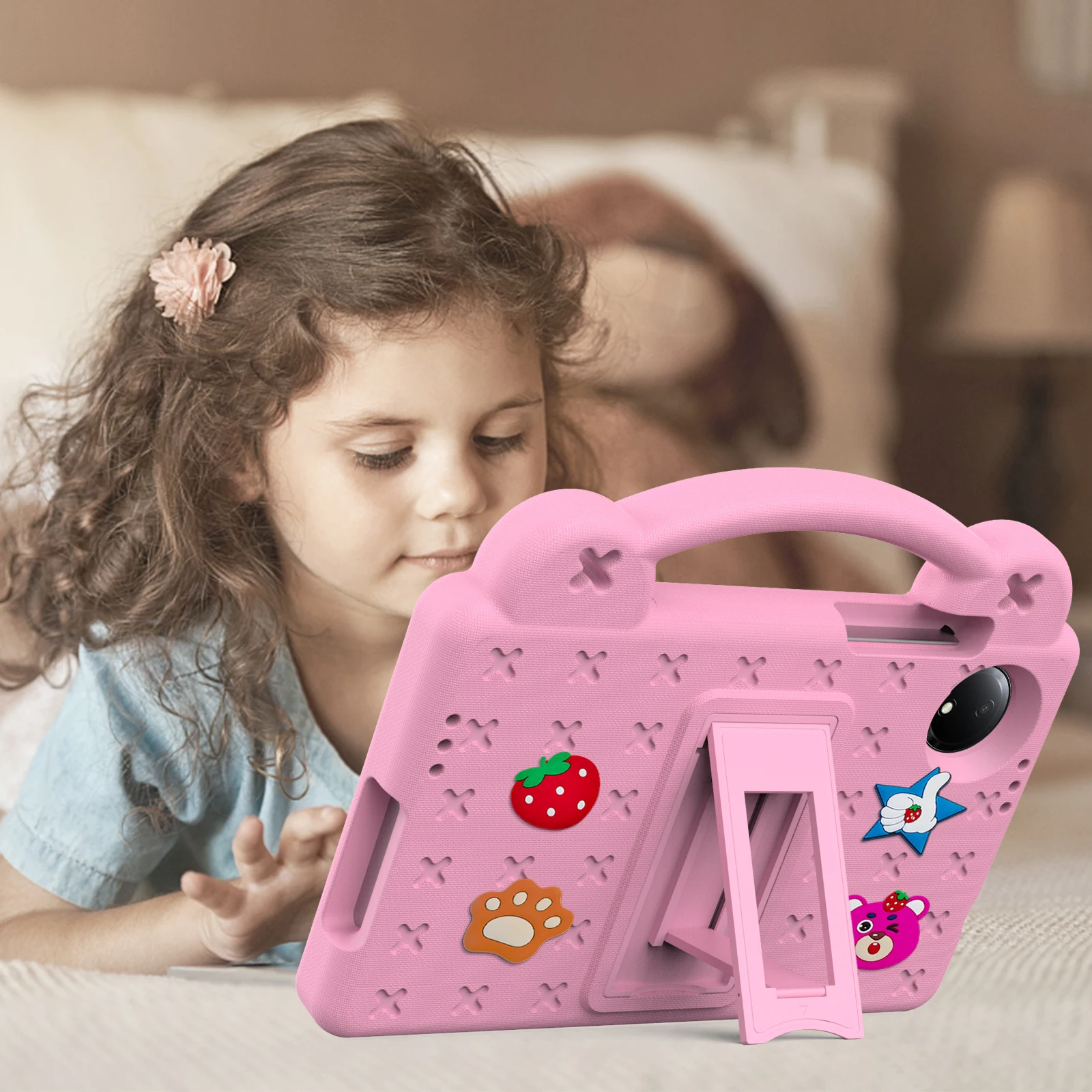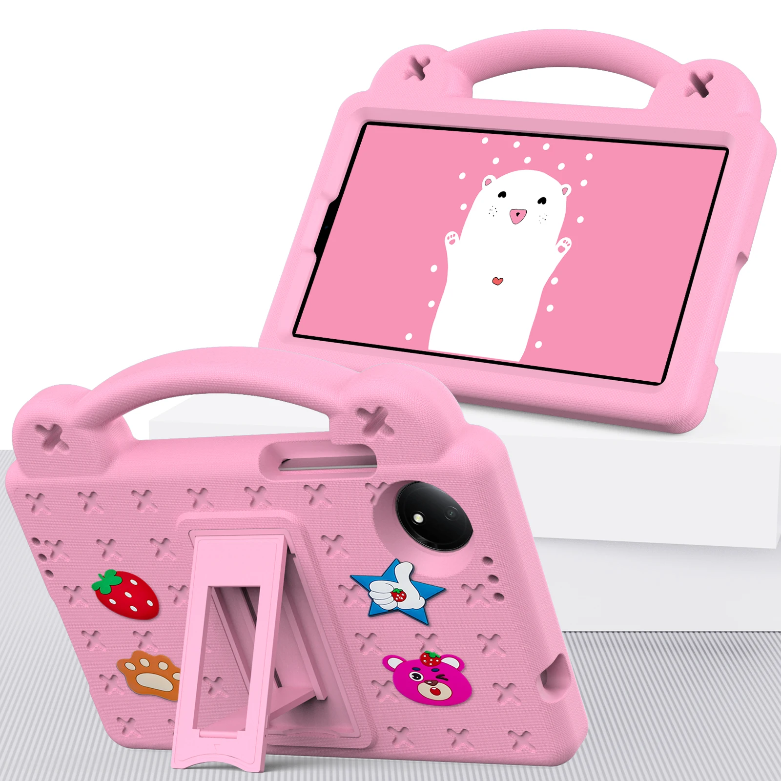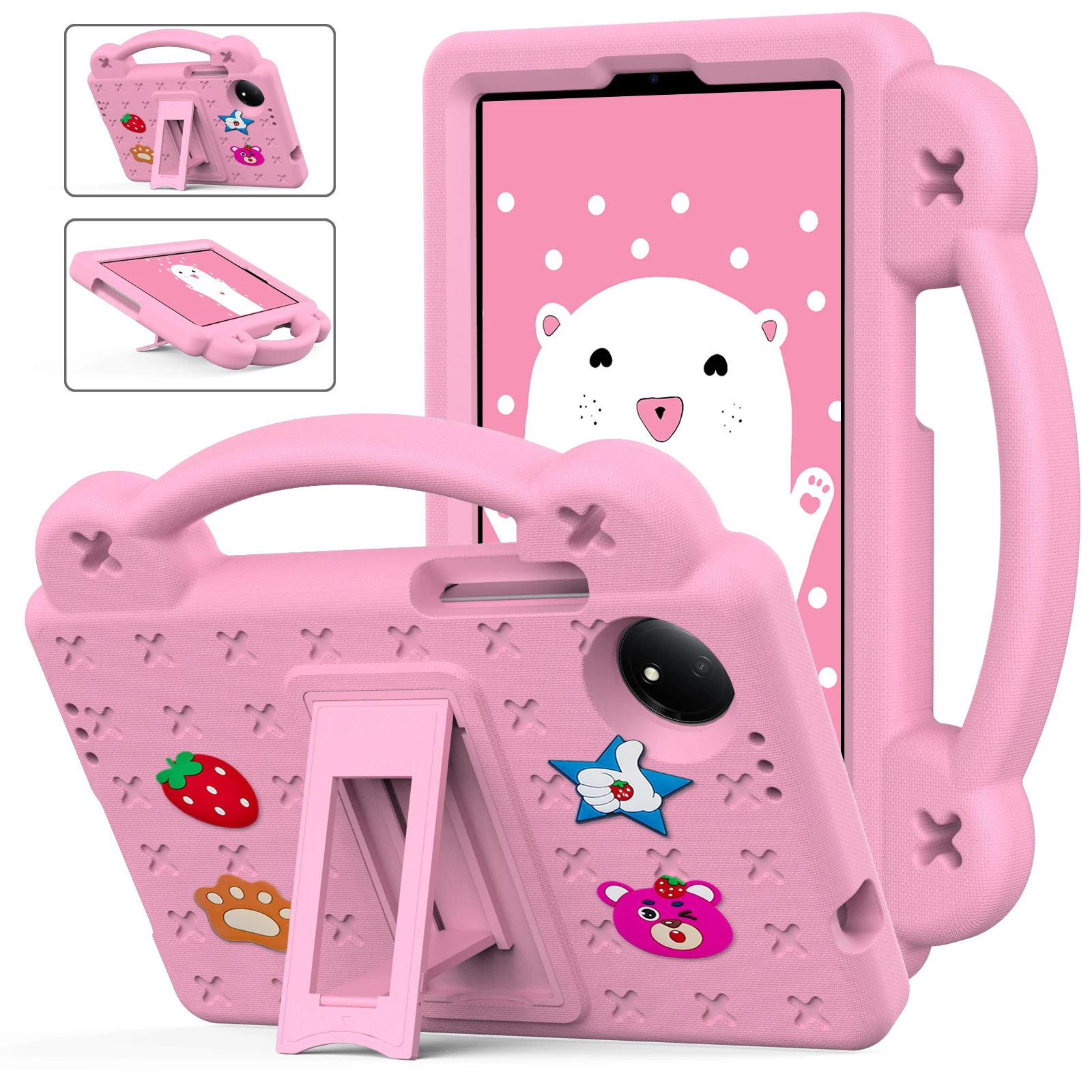 Kids EVA Handle Case For Xiaomi Redmi Pad SE 8.7 inch 2024 Shockproof Protective Cute Strawberry Bear Tablet Cover