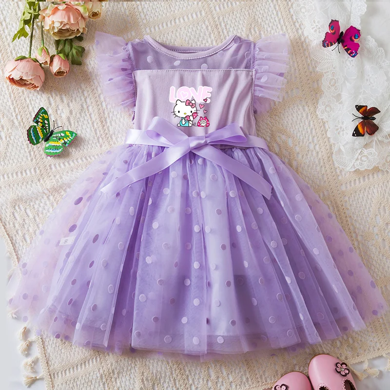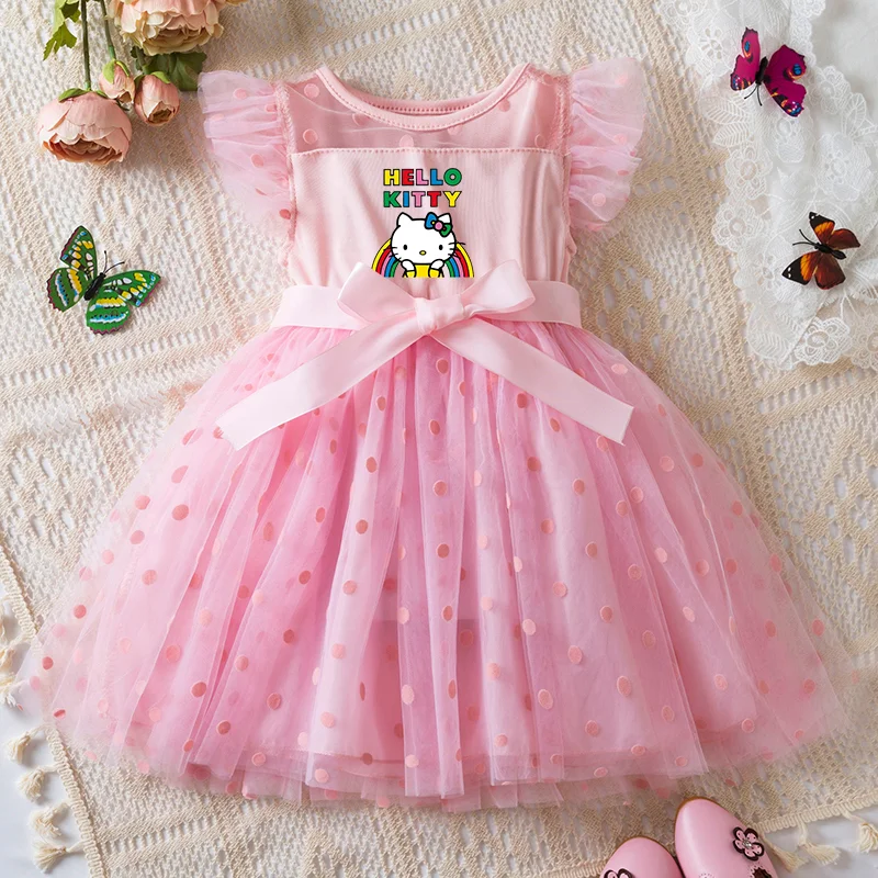 Color: Brown, Size: L - Hello Kitty 2-6Y Baby Girl Dress Princess Mesh Skirt Summer Sleeveless Wedding Party Dresses for Girls Summer