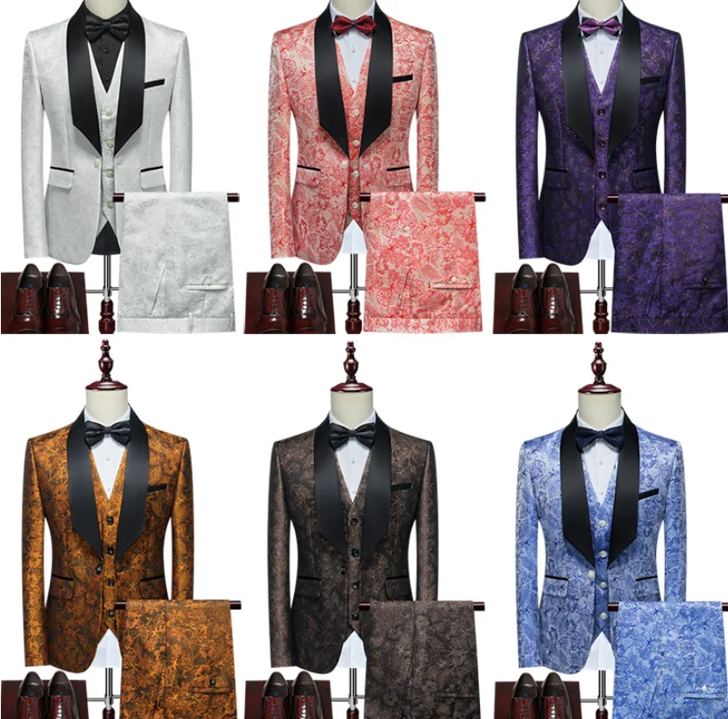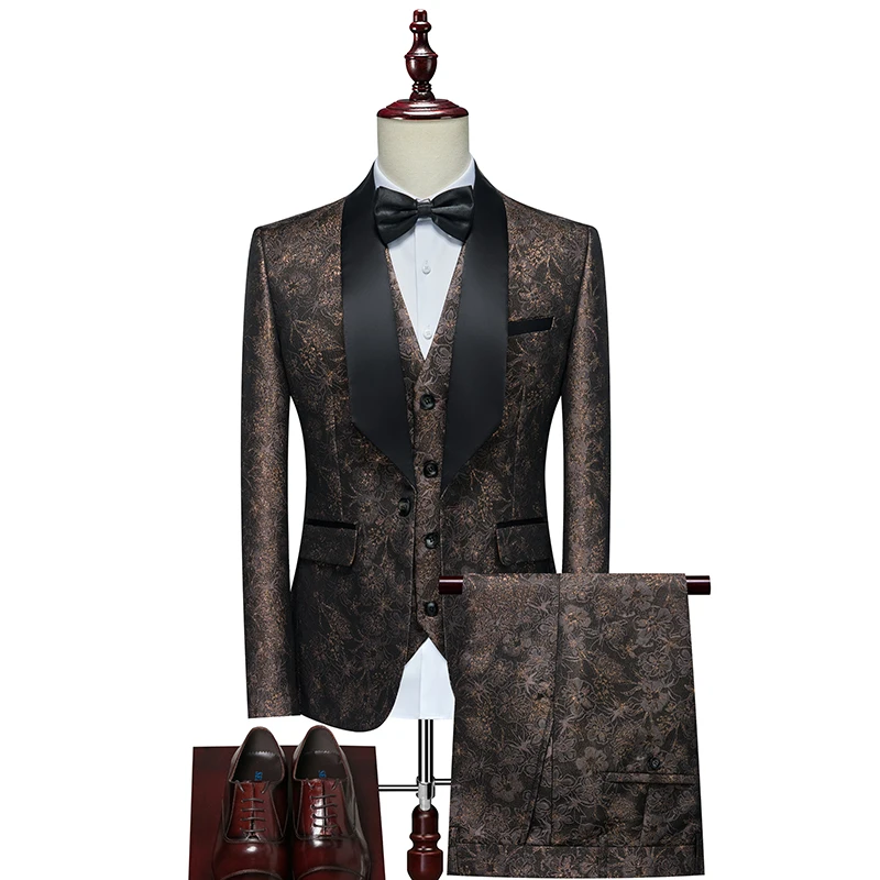 Color: Brown, Size: L - Men's Evening Dress Bridegroom Suit British Wedding Business Casual Fashion Three-piece Set with Vest And Trousers Sizes M-6XL