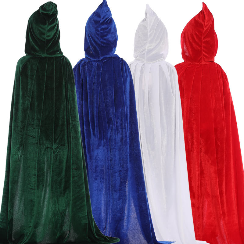 Color: BROWN, Size: L - Velvet Cloak Cape Hooded Medieval Costume Witch Wicca Vampire Man Woman Unisex Solid Color