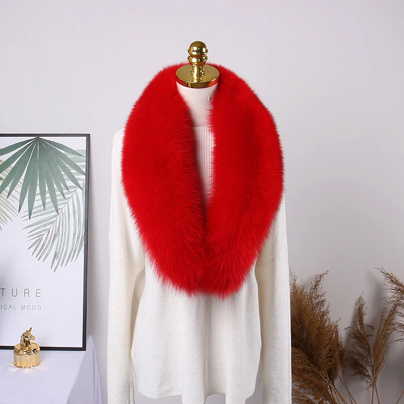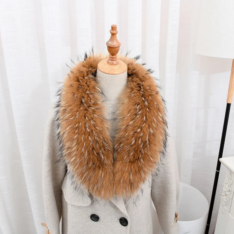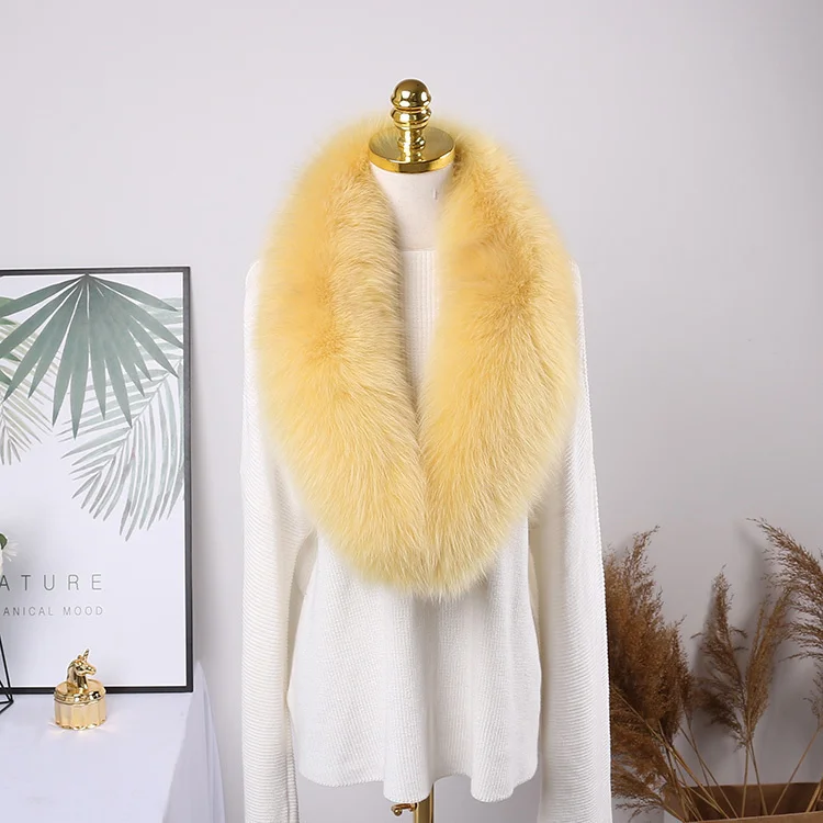Color: Brown, Size: M - 100% Natural Real Fox Fur Collar For Women Men Coat Jacket Fur Scarf Winter Extra Large Size Neck Warmer Fur Scarf Shawls Wraps