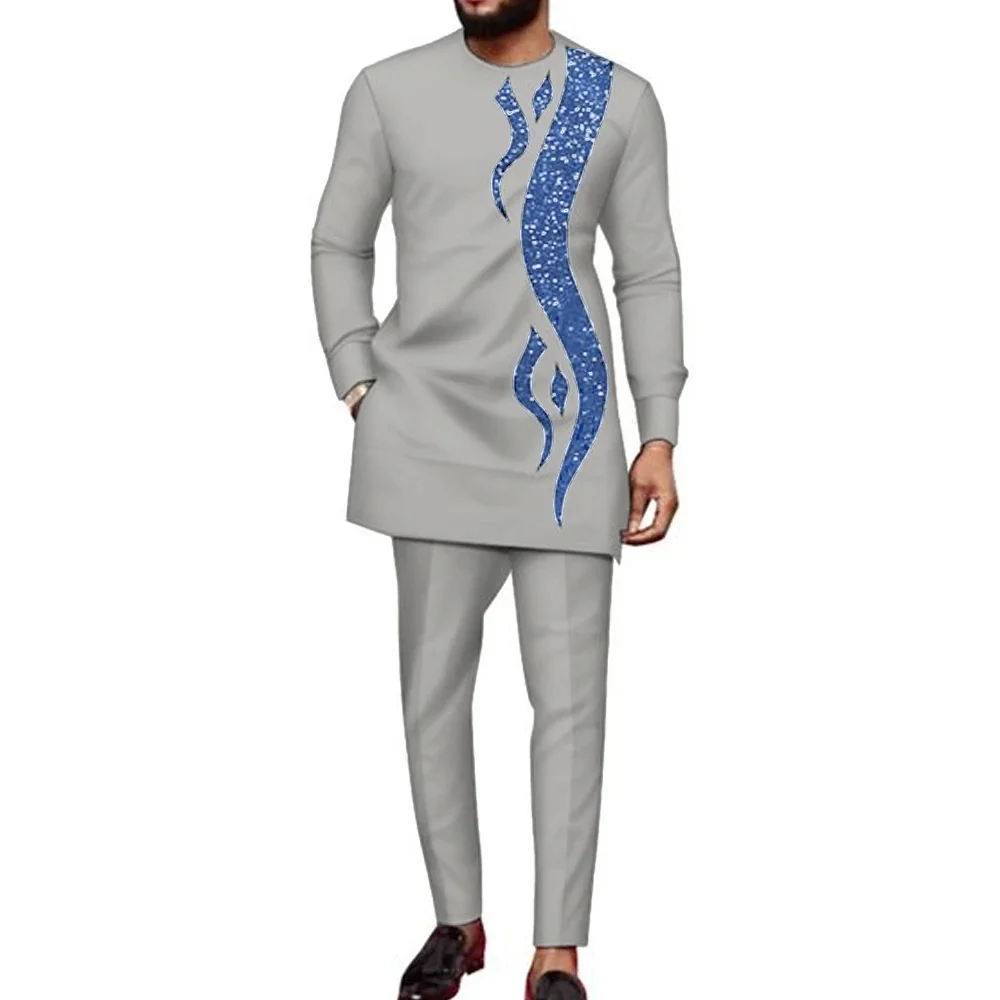 Color: Brown, Size: M - 2024 New African Traditional Men's Set Elegant and Fashionable Men's Suit Casual Embroidery Two Piece Set Men's Suit Kaftan
