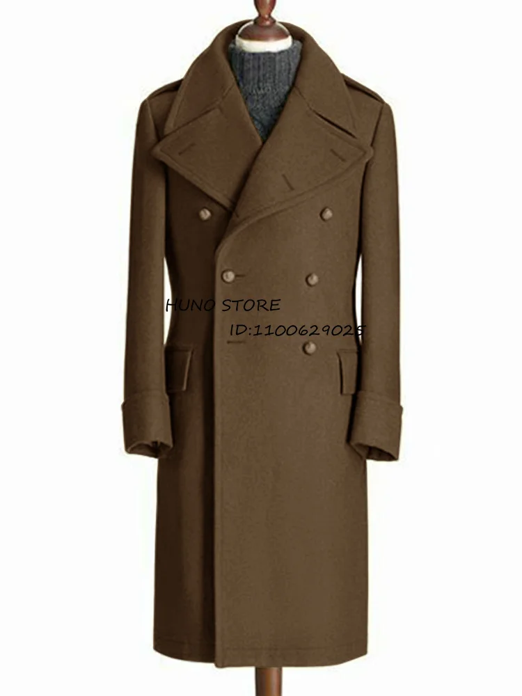 Color: Brown, Size: M - Windbreak Men's Jacket Wool Long Coat Lapel Double Breasted Men's Trench Coats Windbreakers Jackets Man Winter 2023 Martens Male