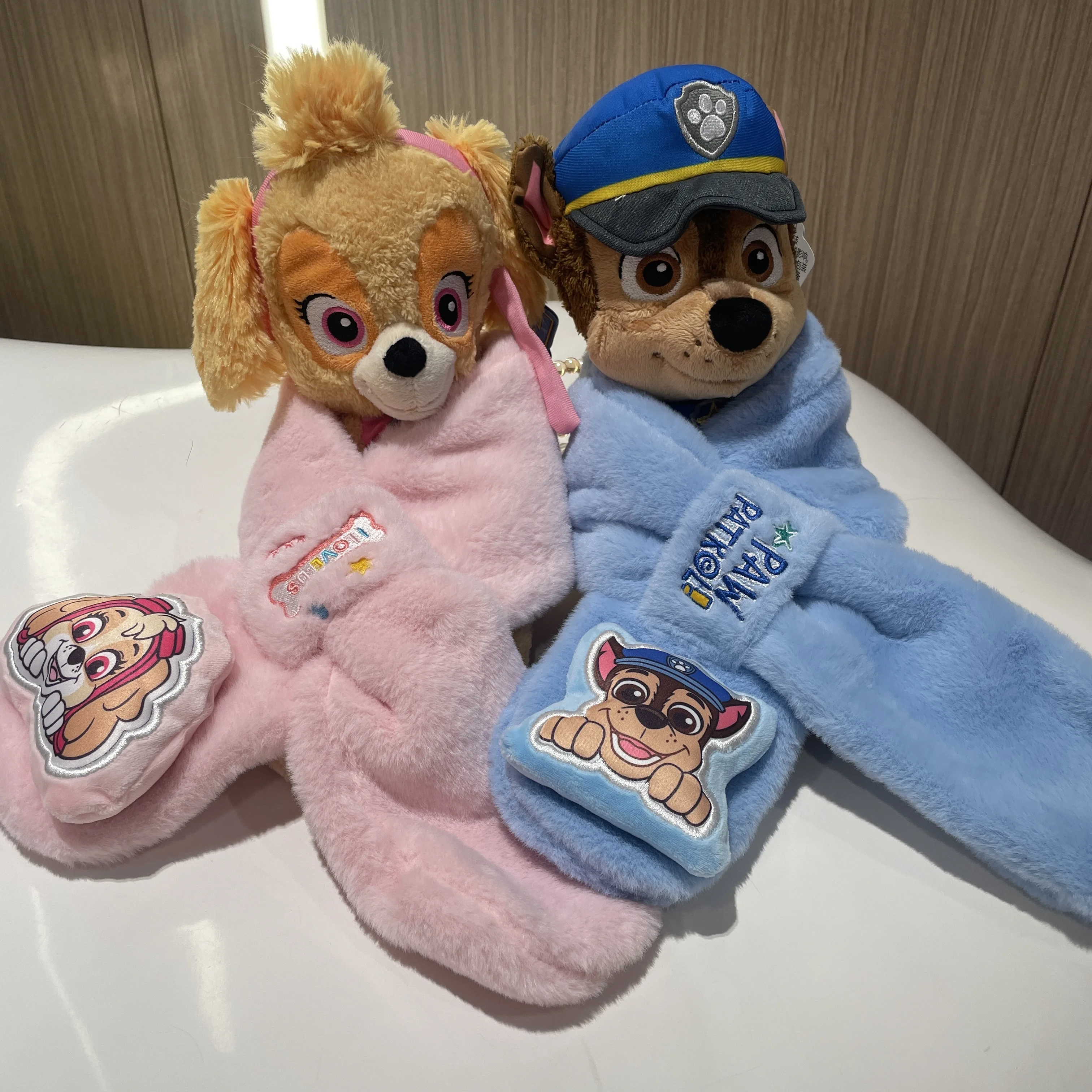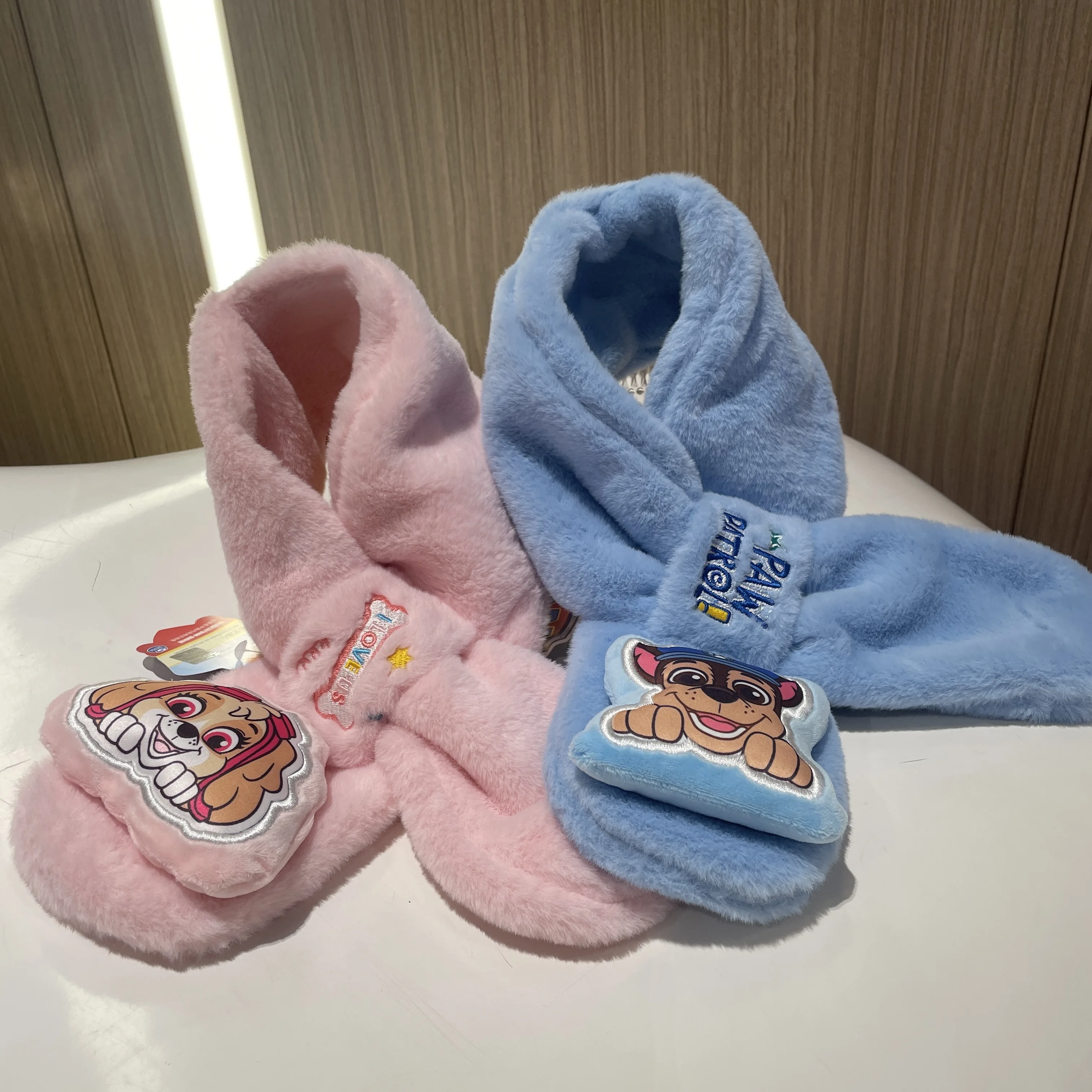 Color: Brown, Size: XXL - 100% Genuine Paw Patrol Thicken Cross Collar Scarf Kids Girls Glove Warm Winter Muffler Fur Plush Cute Shawl Scarfs High quality