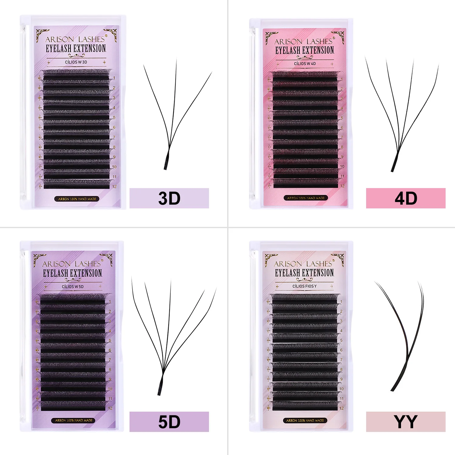 Eyelash extension premade fans: 3D W, 4D W, 5D W, 6D W, 8D W, YY