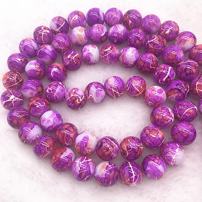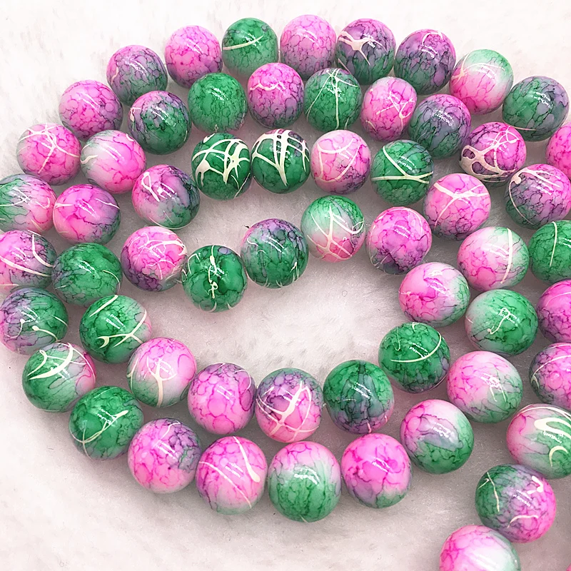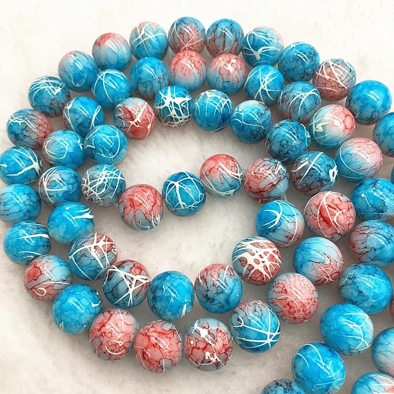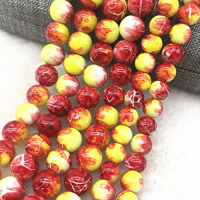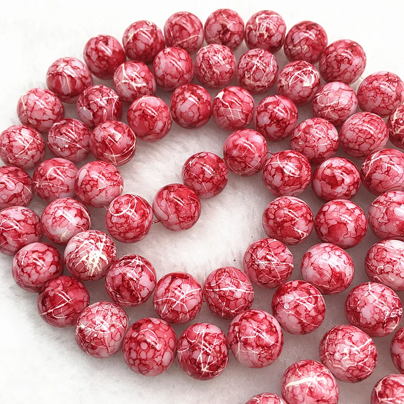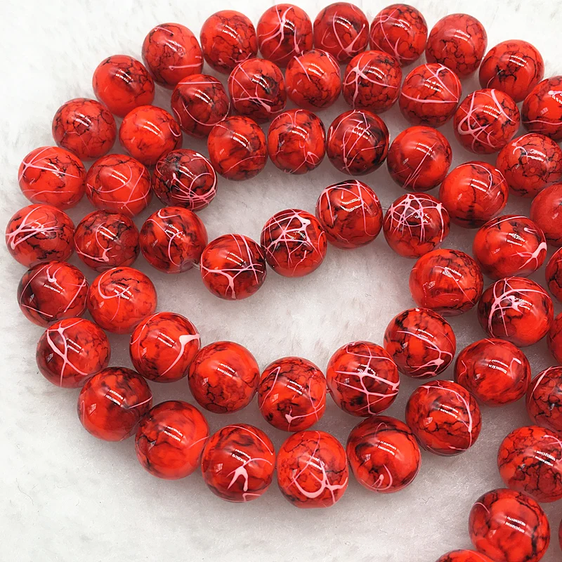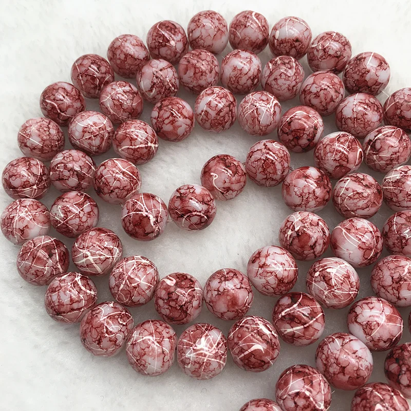 Color: Burgundy, Item Diameter: 4mm - Wholesale 4/6/8/10mm Glass Beads Round Loose Spacer Beads Pattern For Jewelry Making DIY Bracelet Necklace