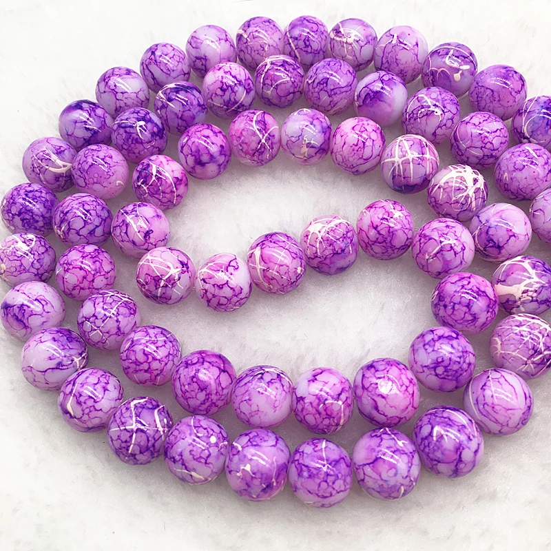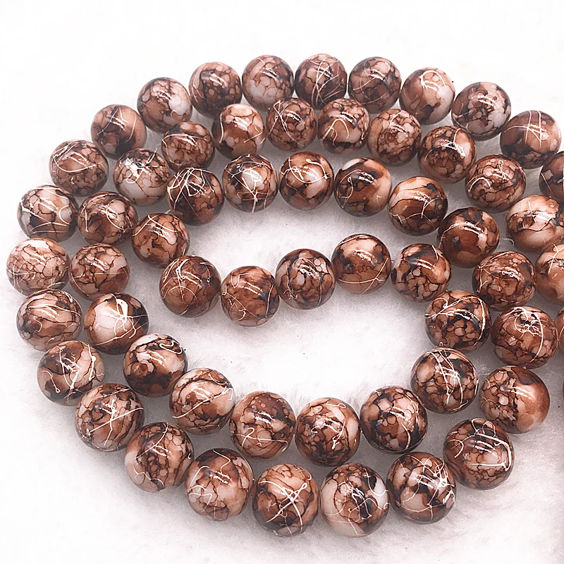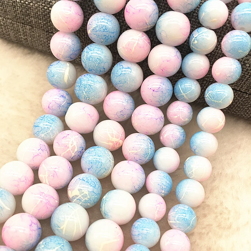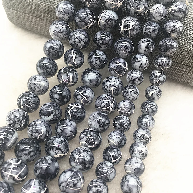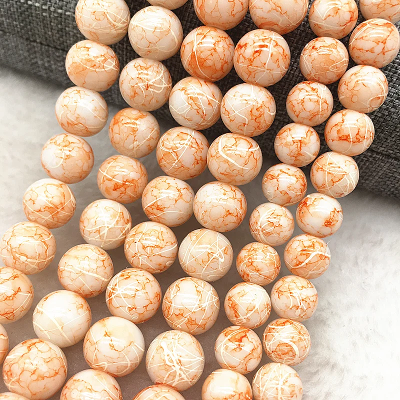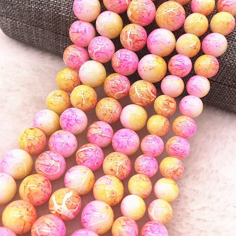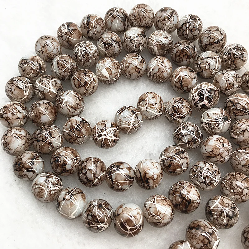 Color: Burgundy, Item Diameter: 4mm - Wholesale 4/6/8/10mm Glass Beads Round Loose Spacer Beads Pattern For Jewelry Making DIY Bracelet Necklace
