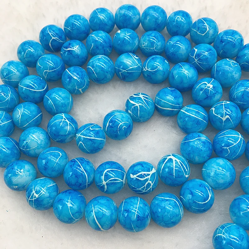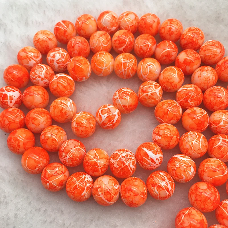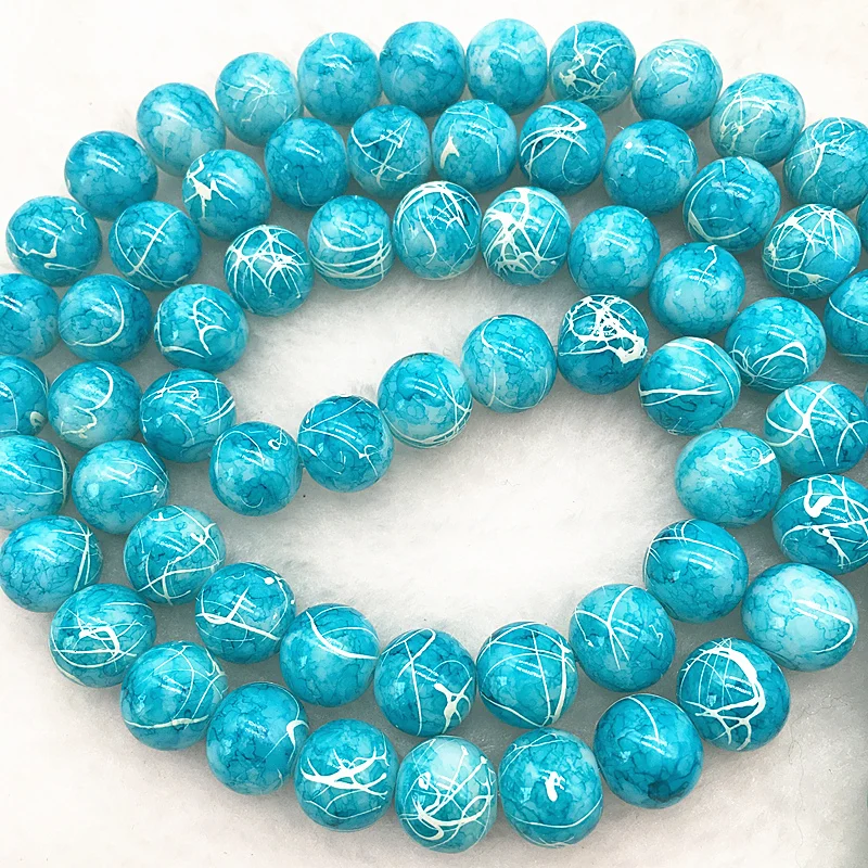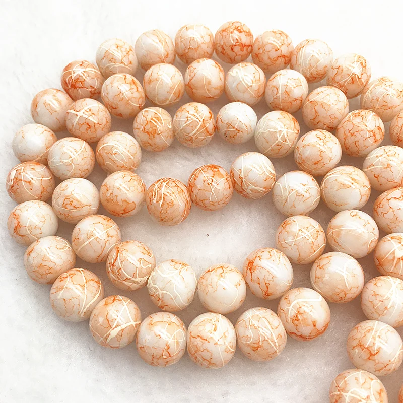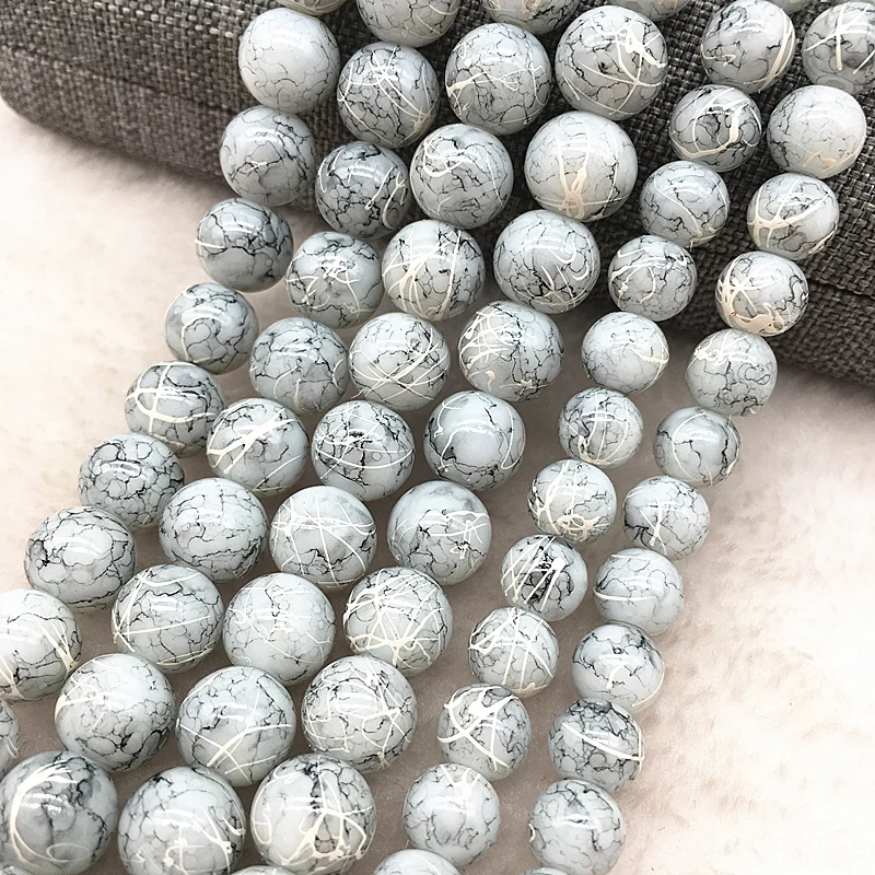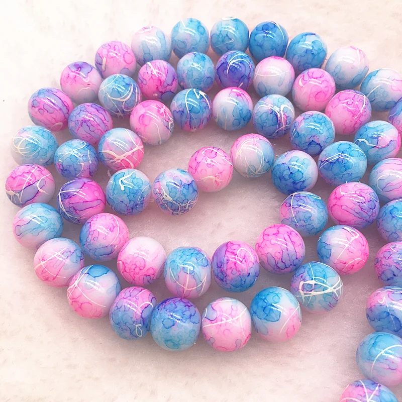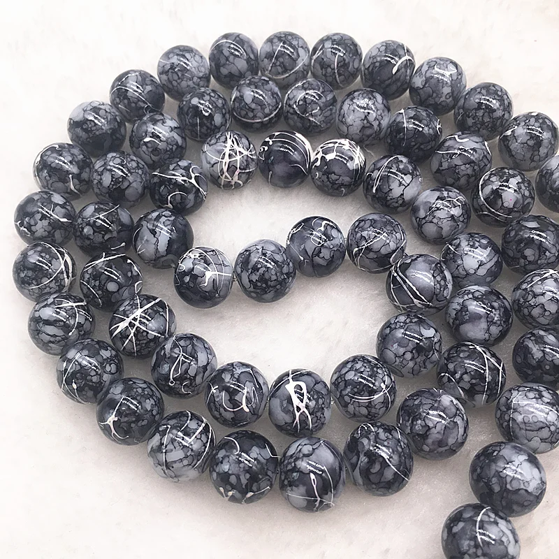 Color: Burgundy, Item Diameter: 4mm - Wholesale 4/6/8/10mm Glass Beads Round Loose Spacer Beads Pattern For Jewelry Making DIY Bracelet Necklace