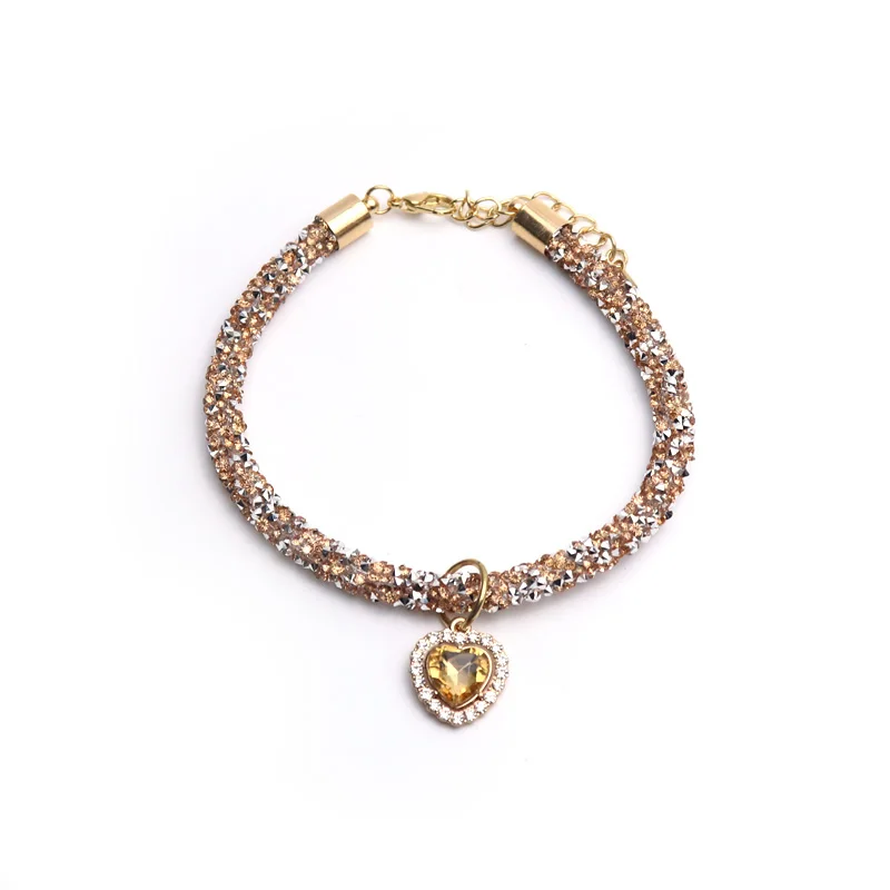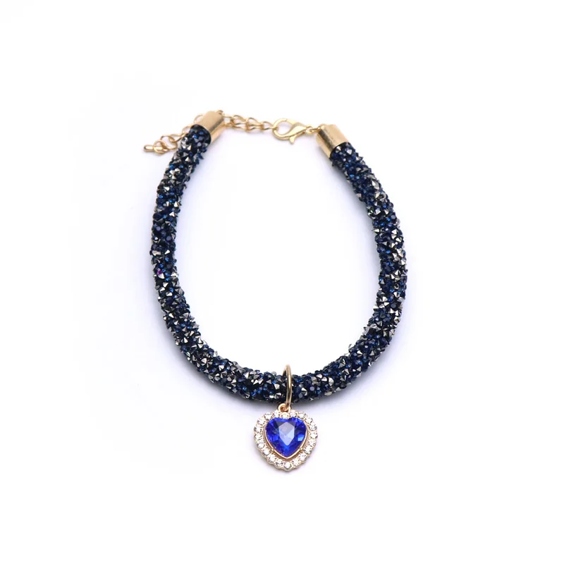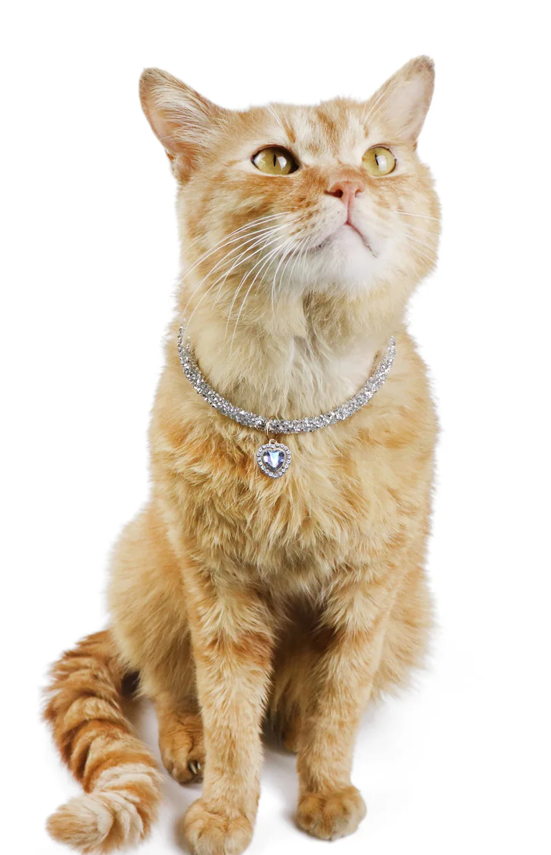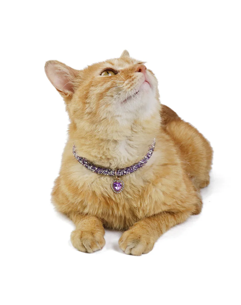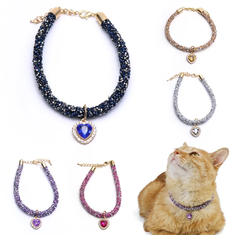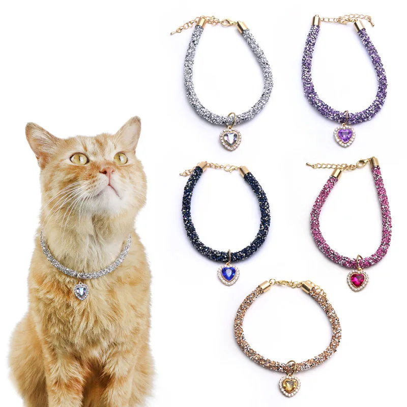 Color: Burgundy, Size: M - Luxury Cat Collar with Heart Crystal Pendant Puppy Chihuahua Necklace Reflective Rhinestone Kitten Neck Strap Pets Accessories