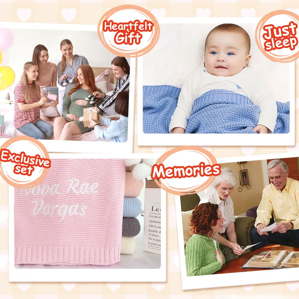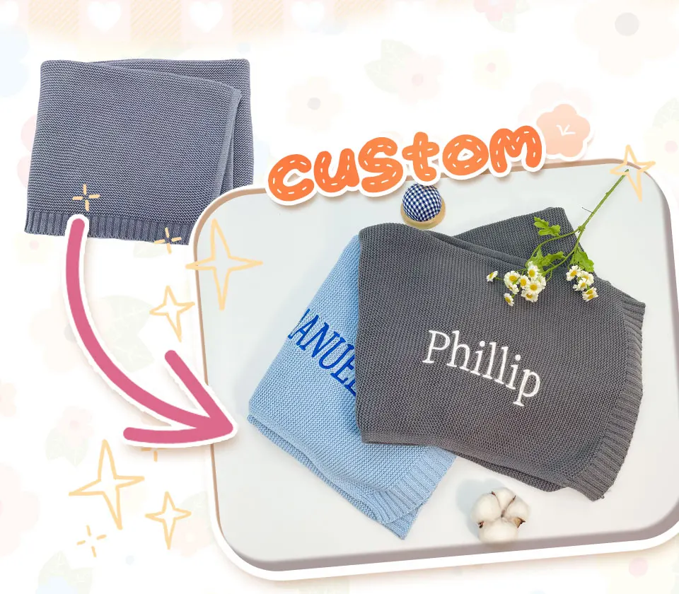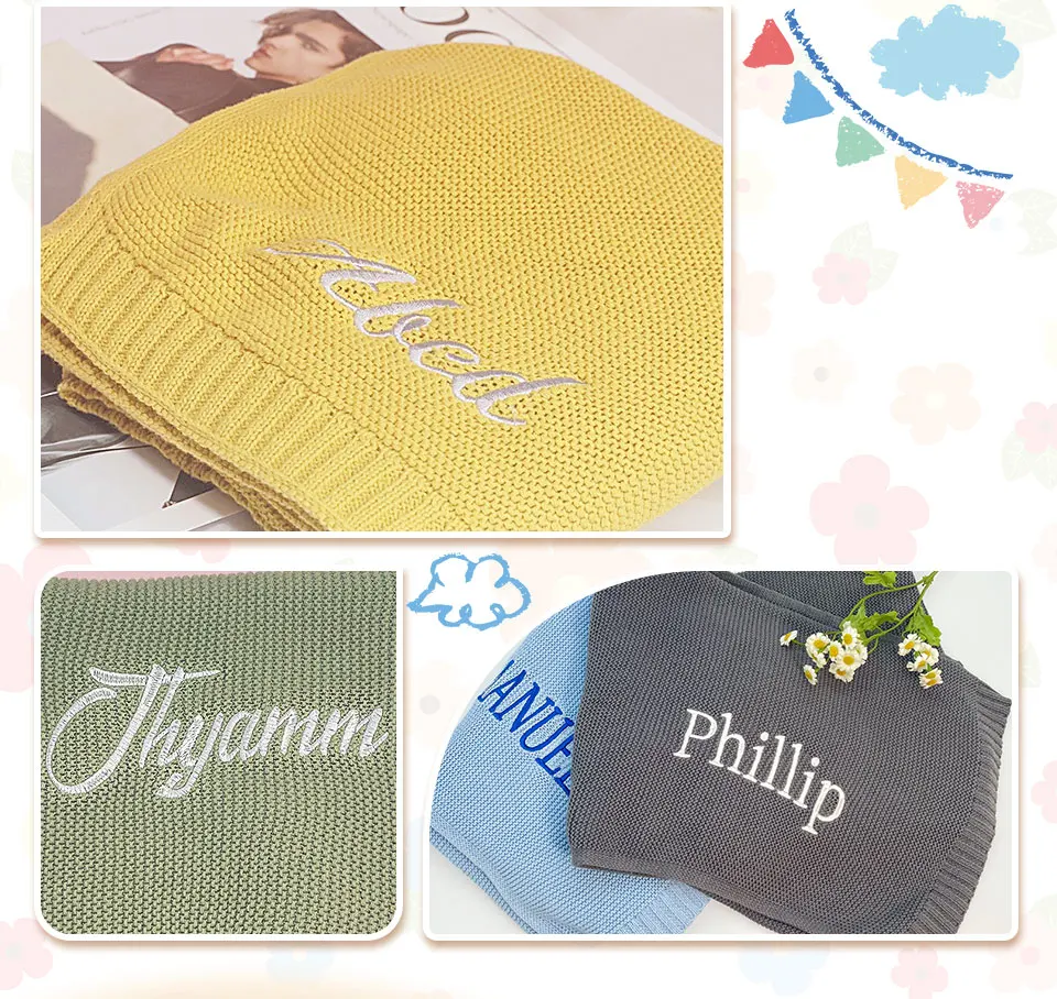 Color: Burgundy, Size: Option 1, Ships From: CN - Personalized Baby Name Newborn Cotton Beanie and Knitted Blanket Set Embroidered Name Covering and Cute Hat Gift Set