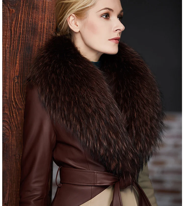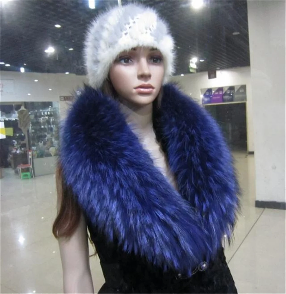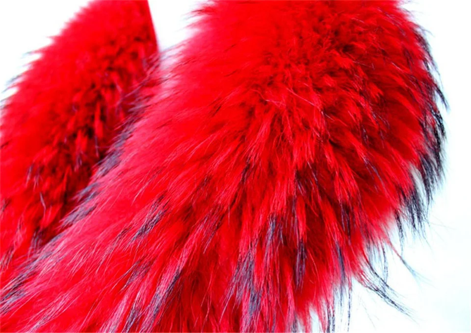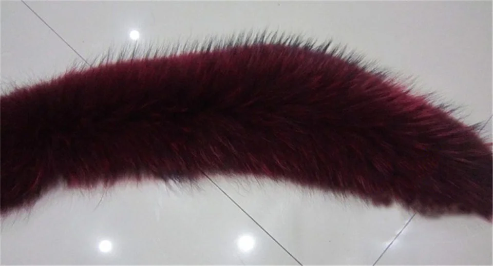 Color: Burgundy, Size: S - Real Raccoon Fur Scarves Woman 100% Pure Natural Raccoon Fur Collar Warm Winter Scarves Red Fox Fur Collar L#1