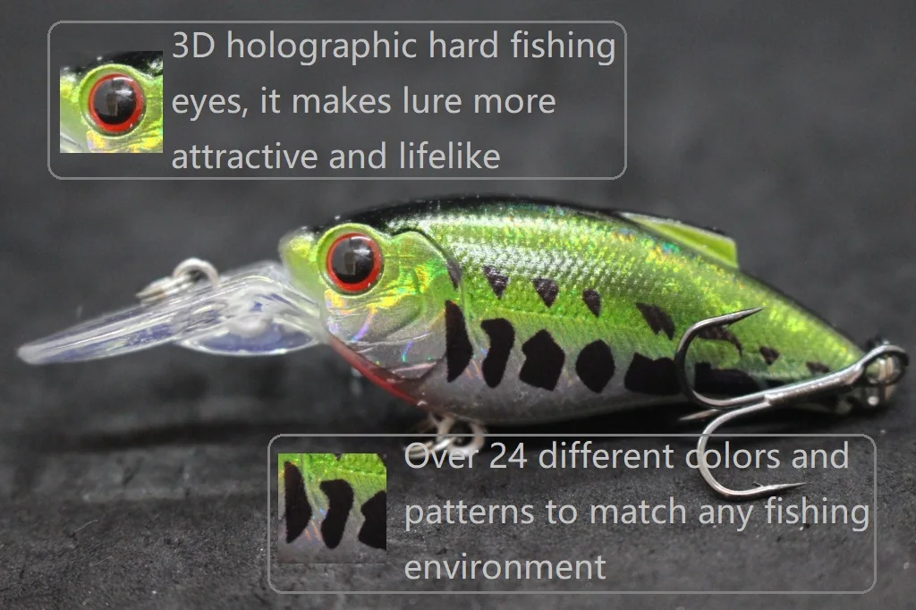 This is a medium-sized crankbait lure designed for fishing in medium-depth water. The wide wobble action suggests that it can create a lot of disturbance in the water, which can attract predatory fish. The size of the lure and the use of a hook size 8 suggest that it is designed to target medium-sized fish species. The high-quality ABS construction and epoxy coating on the finish ensure that this lure is durable and can withstand regular use. The black nickel round bend treble hooks are designed to securely hook the fish, while the tank testing ensures that the lure performs well in the water. Overall, this lure seems to be a good choice for anglers who want to target medium-sized fish species in medium-depth water and enjoy using crankbait lures with a wide wobble action.