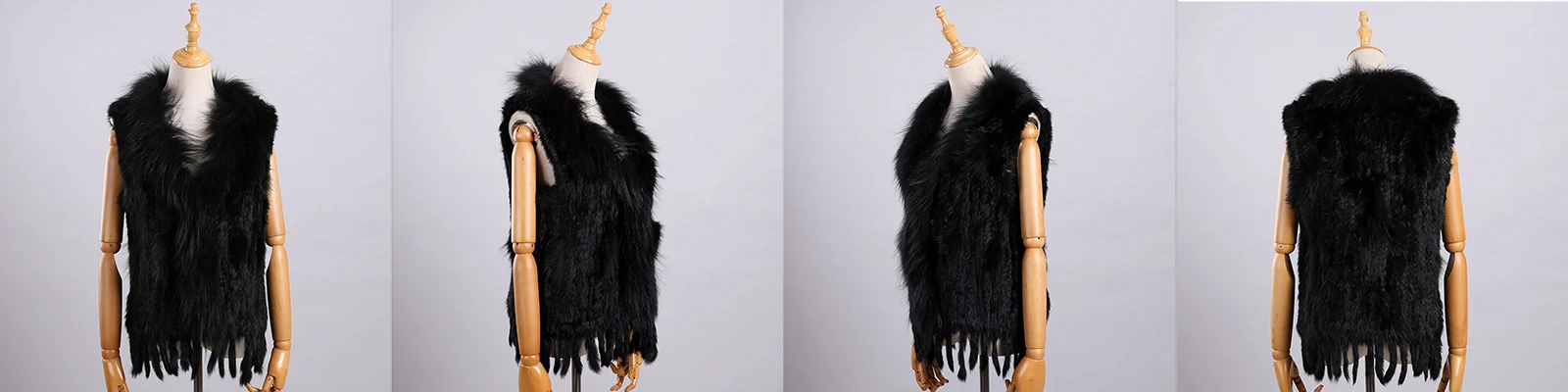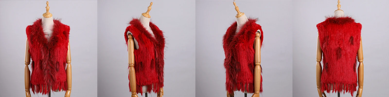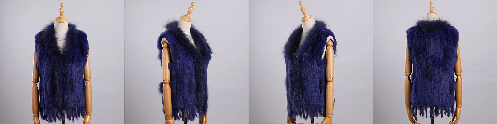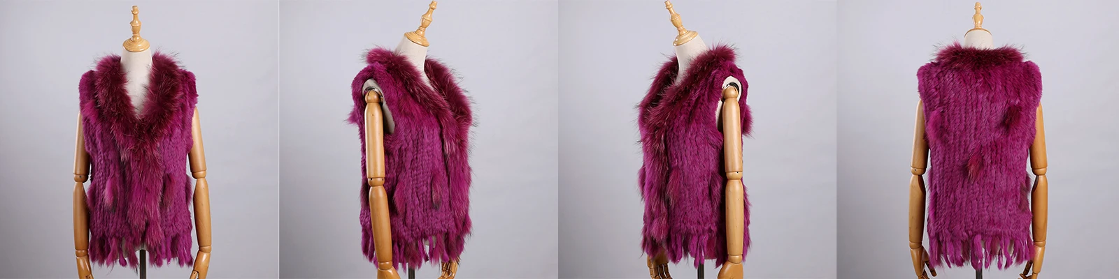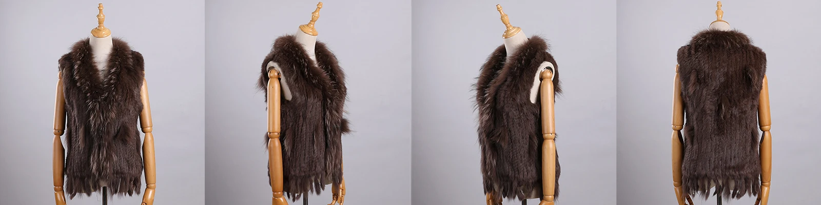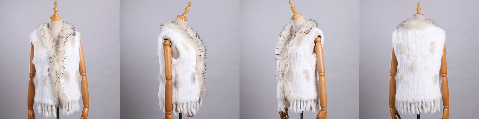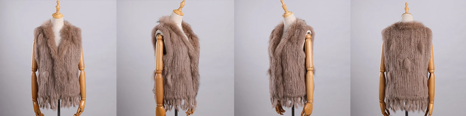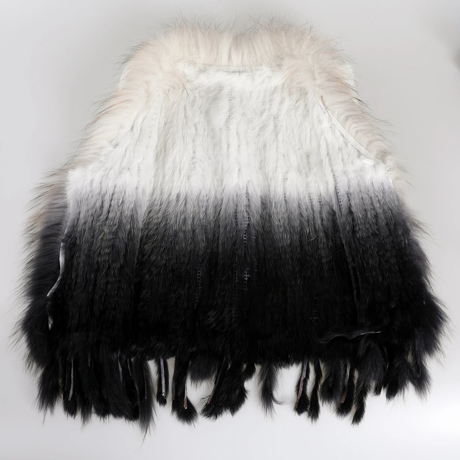 Color: Champagne, Size: XL - Luxury Women's Genuine Premium Long Hair Rabbit Fur Knit Vest Raccoon Fur Trim Gilet Lady Sleeveless Waistcoat Real Fur Jacket