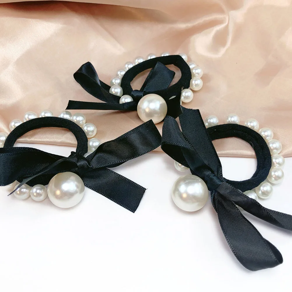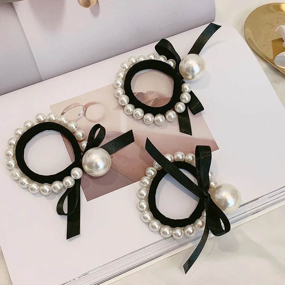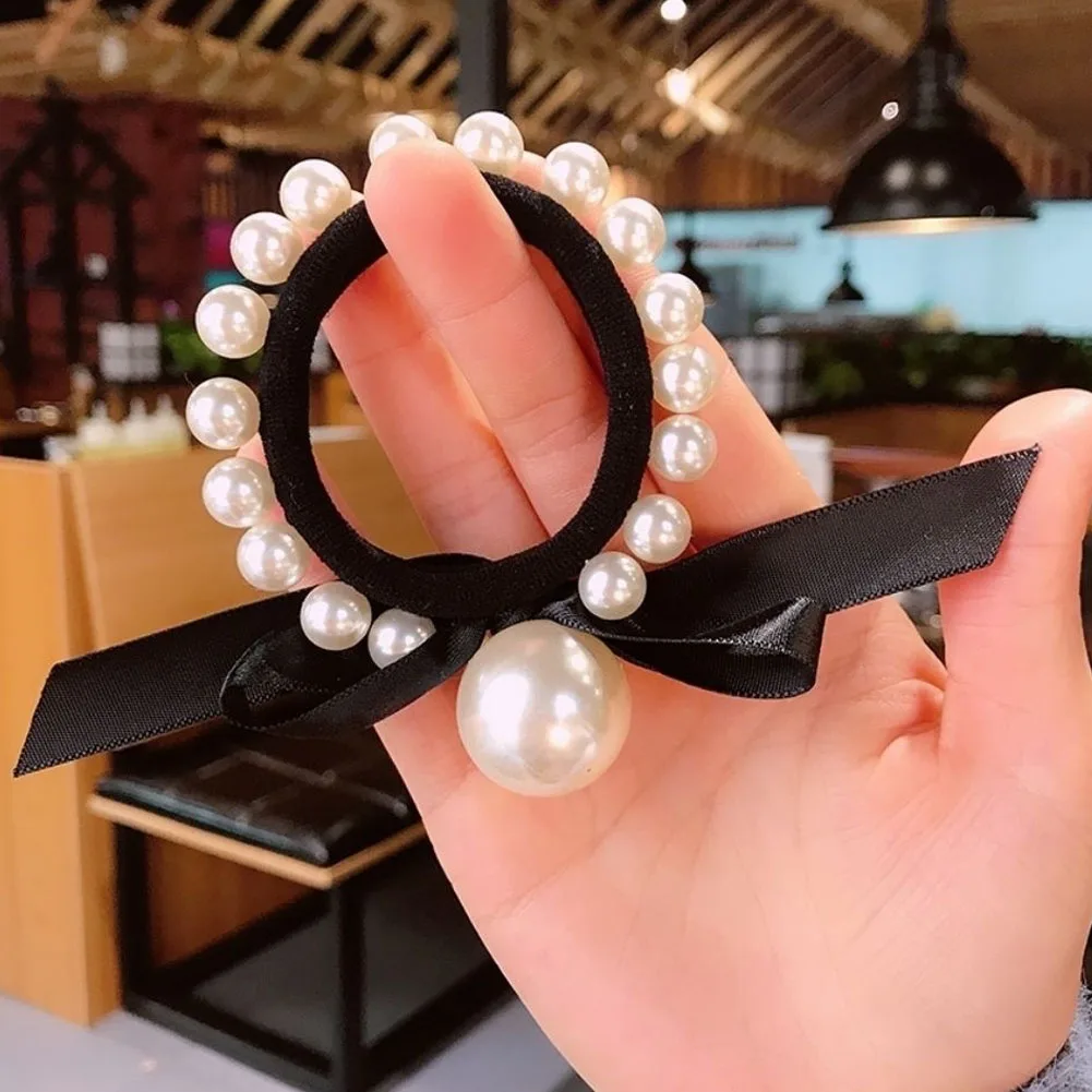 Color: Chocolate - 2022 Fashion Woman Big Pearl Hair Ties Korean Style Hairband Scrunchies Girls Ponytail Holders Rubber Band Hair Accessories