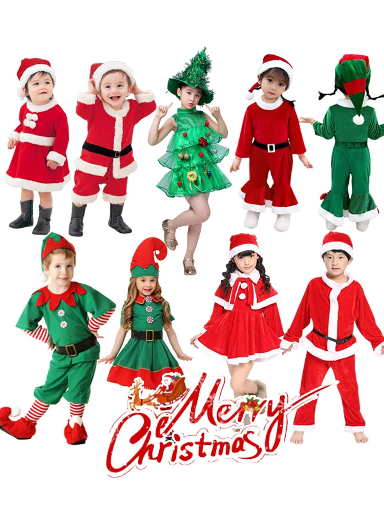 Color: Chocolate, Kid Size: 12 - New Year Kids Santa Claus Costume Green Elf Cosplay Christmas Carnival Party Fancy Dress for Girls Boys Red Xmas Clothes Set